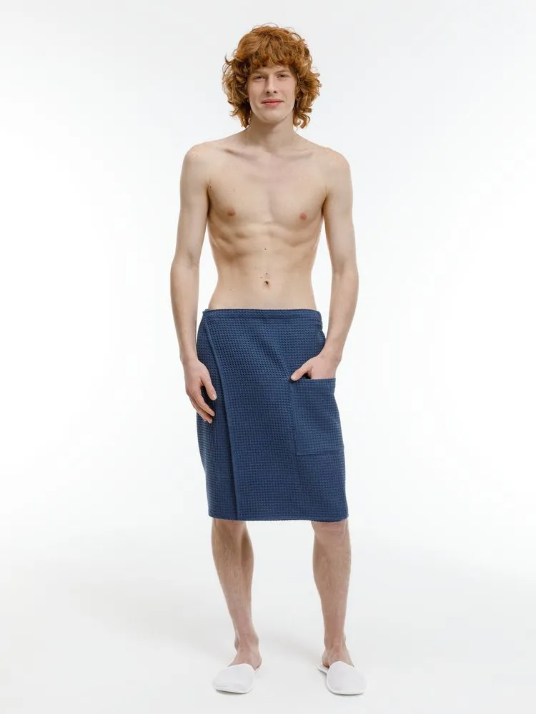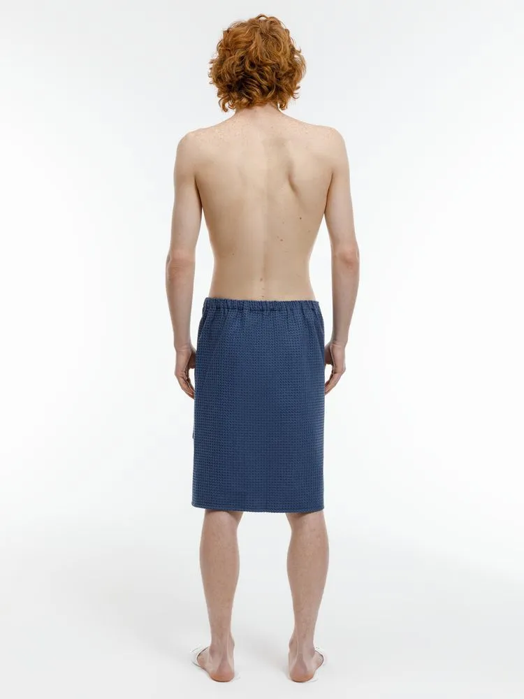 Мужской килт для бани на липучке, которая позволяет регулировать размер. Спереди удобный карман.
