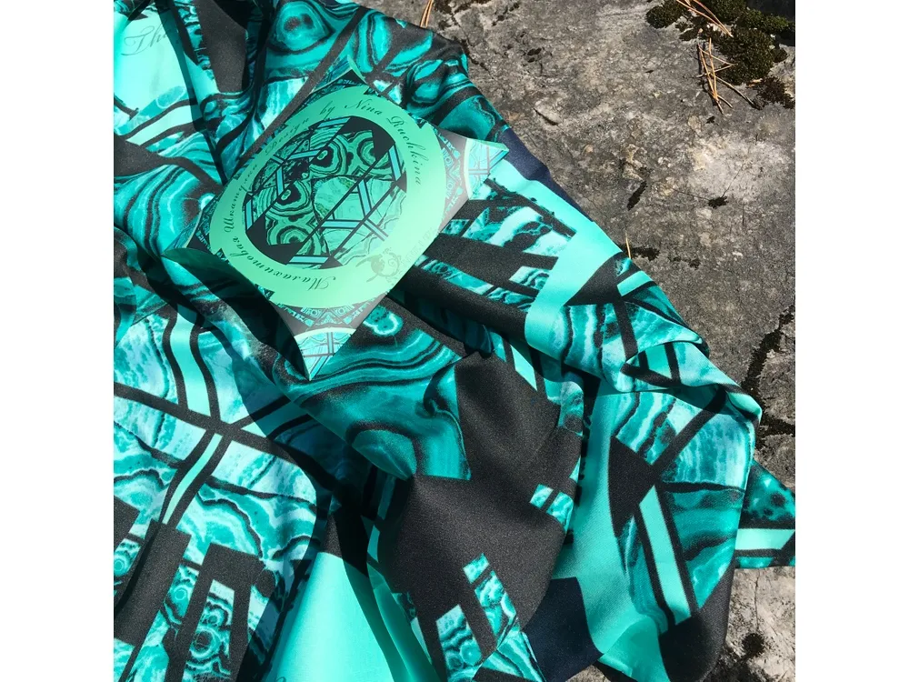 Представляем великолепный Уральский сувенир - платок "Малахитовая шкатулка". Малахит - один из самых удивительных и красивейших камней на планете. Именно в России были открыты гигантские месторождения малахита, которые прославили этот минерал во всём мире. Уральские мастера создавали из малахита настоящие шедевры, поражающие глубиной художественного видения и совершенством обработки. С малахитом связано множество таинственных и мистических сказаний, а всем известный на Урале сказ "Малахитовая шкатулка", написанный Павлом Бажовым переведён на десятки языков мира. Прикоснитесь к Уральской магии, ощутив на себе силу царского камня с легендарной историей.