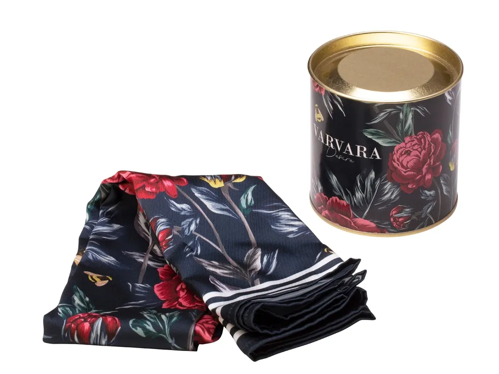Платок из струящегося искусственного шелка, размером 70х70 см. Упакован в подарочный тубус.