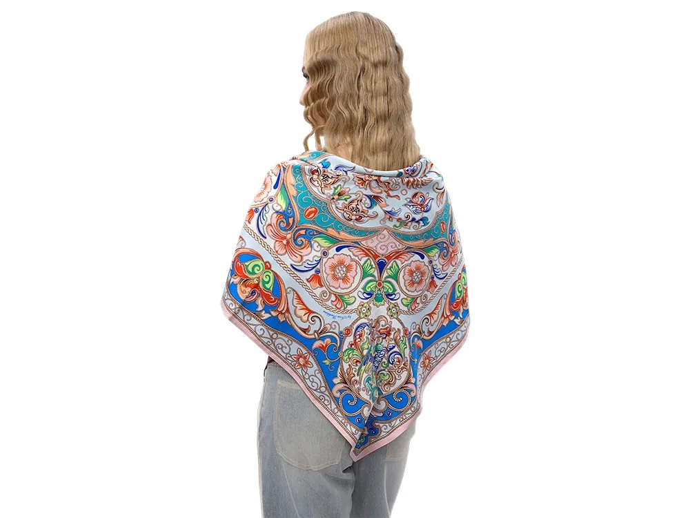 Издавна произведения отечественных мастеров эмальерного искусства славятся изысканностью рисунка и необыкновенным разнообразием красок. В дизайне аксессуара «Шедевры русских эмальеров» раскрывается филигранность изобразительного наследия эмали имперского периода. Сложная система многоцветного декора полотна, ажурная композиция причудливых растительных мотивов и христианской символики выражают дух русского творчества, воплощают красоту национальной художественной традиции. В центре изображен двуглавый орел – государственный герб Российской империи, триумфальный символ величия нашей страны. Платок «Шедевры русских эмальеров» станет яркой деталью стиля и знаковым памятным подарком. Над дизайном работали: Нина Ручкина, Анна Шулик.