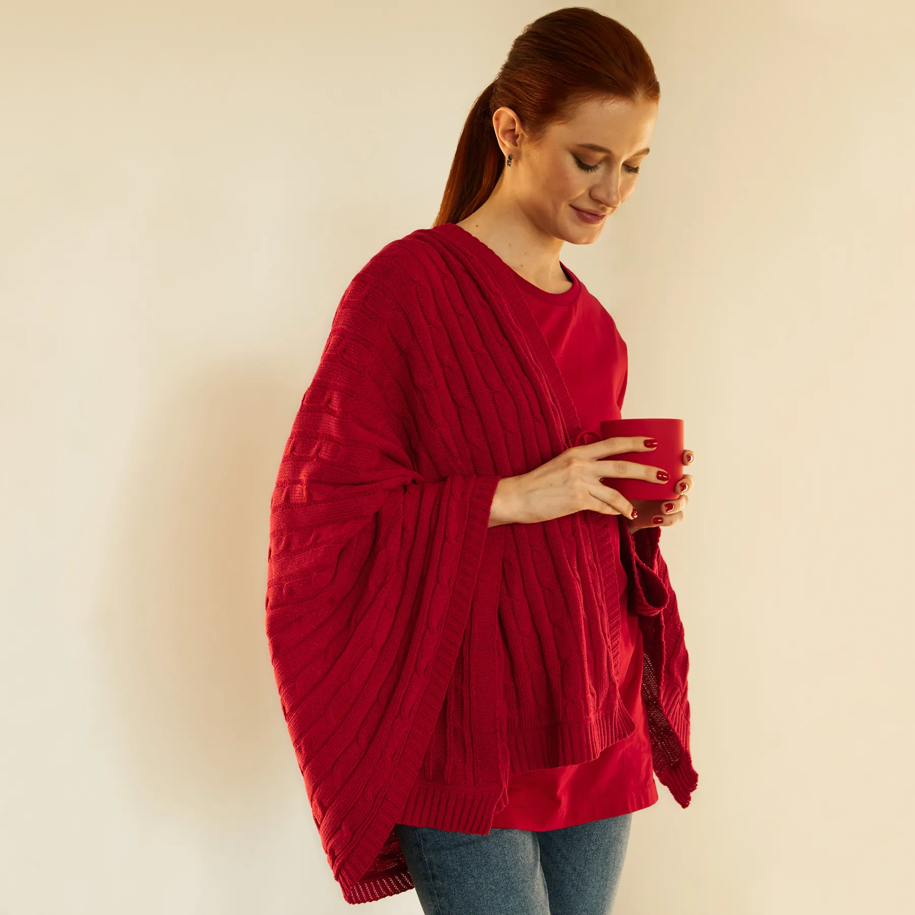 Плед Fado вязаный, красный (без подарочной коробки)