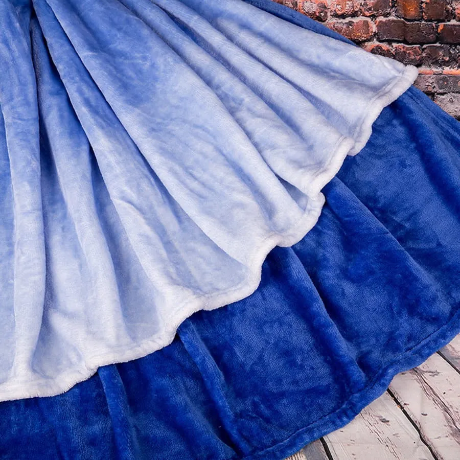 Плотность пледа 280 гр м, размер 130*150 см. Плед окрашен градиентом - плавный переход от светло-серого к темно-серому оттенку.