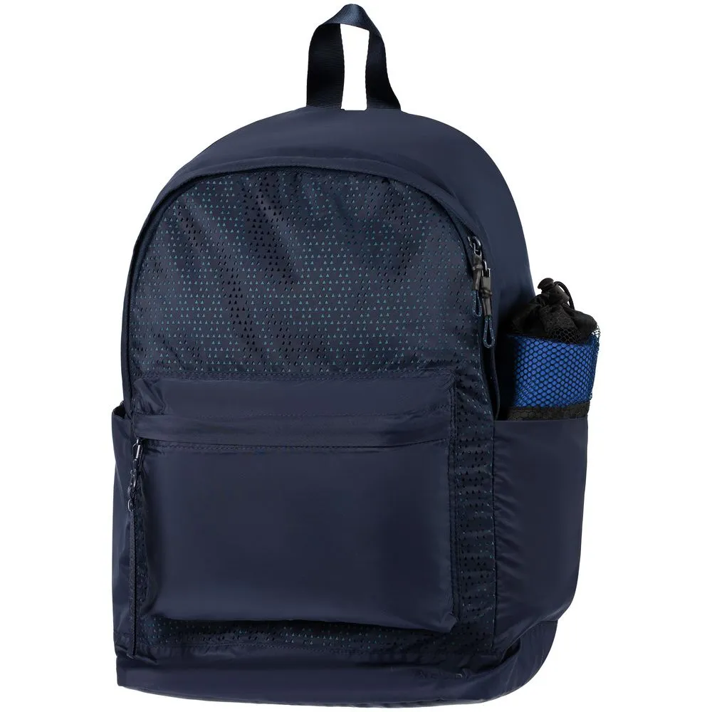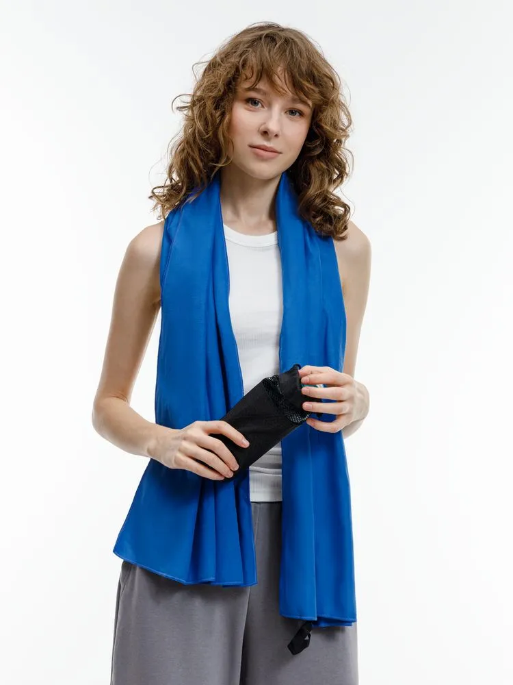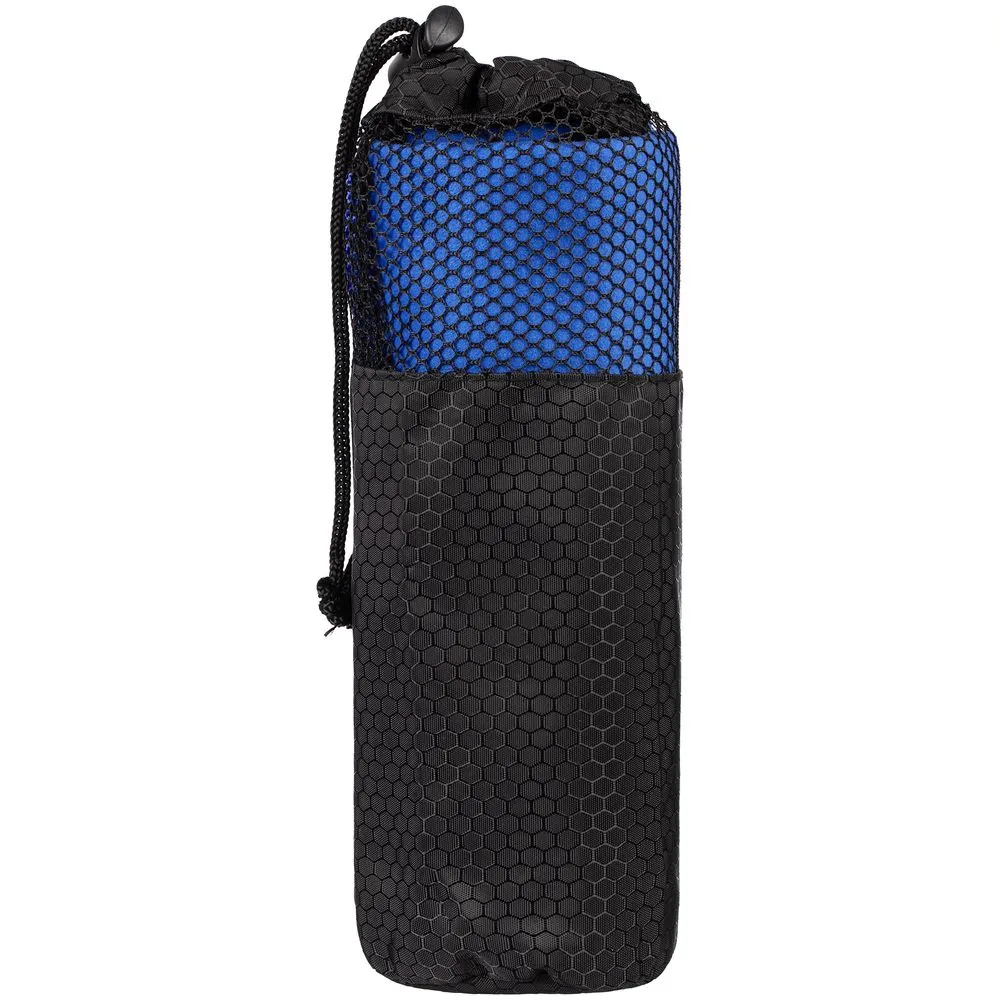 Полотенце упаковано в сумку-чехол из прочной ткани с плетением рипстоп и дышащим сетчатым верхом. Чехол также можно использовать в качестве несессера для косметических и купальных принадлежностей.