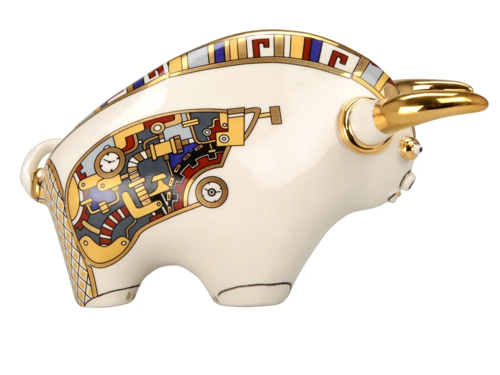 Вы знали, что образ быка в фэн-шуе трактуется как символ стабильности и процветания? Скульптура “Бык” - это великолепный символический подарок с уникальной ручной росписью, выполненный в стиле стимпанк. Представьте себе мир, где паровые машины и другие ретро-технологии не исчезли, а достигли высочайшего развития. Так и выглядит стимпанк! Неповторимые формы, применение ручной работы необычного геометрического орнамента в комбинации с высокой техникой мазка дают изделиям «Арт–Модерн керамики» оригинальный колорит и притягательность, а небольшой объем производства и индивидуальная роспись делают изделия исключительными. Внимание! Данное изделие относится к категории повышенной хрупкости. Для обеспечения его целостности и безопасной транспортировки настоятельно рекомендуется использование обрешетки. Обрешеточная упаковка является обязательной при доставке, и компания Oasis не несёт ответственности за повреждения, возникшие в результате ненадлежащей упаковки или транспортировки без обрешетки.