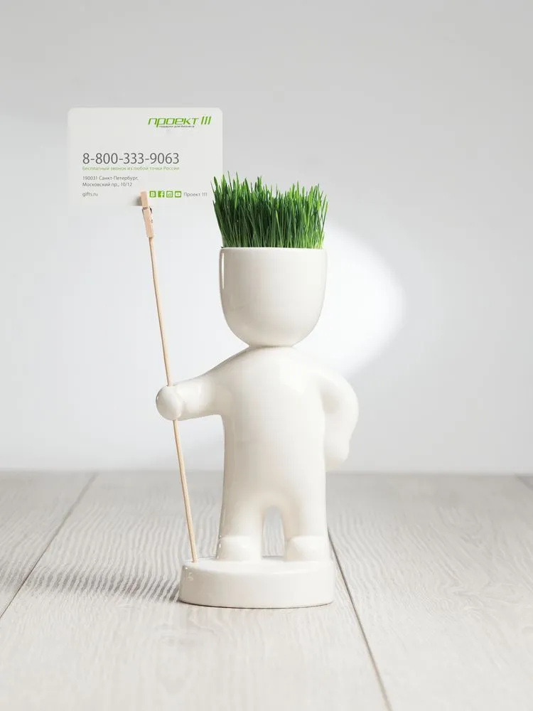 Фигурки Funky — экологичное украшение интерьера, кусочек зеленого газона в офисе или дома. Посадите волосы-травинки и наблюдайте, как меняется человечек. Вы можете сделать ему стильную стрижку, добавить настроения, нарисовав маркером лицо, — и поменять образ, когда трава снова подрастет.