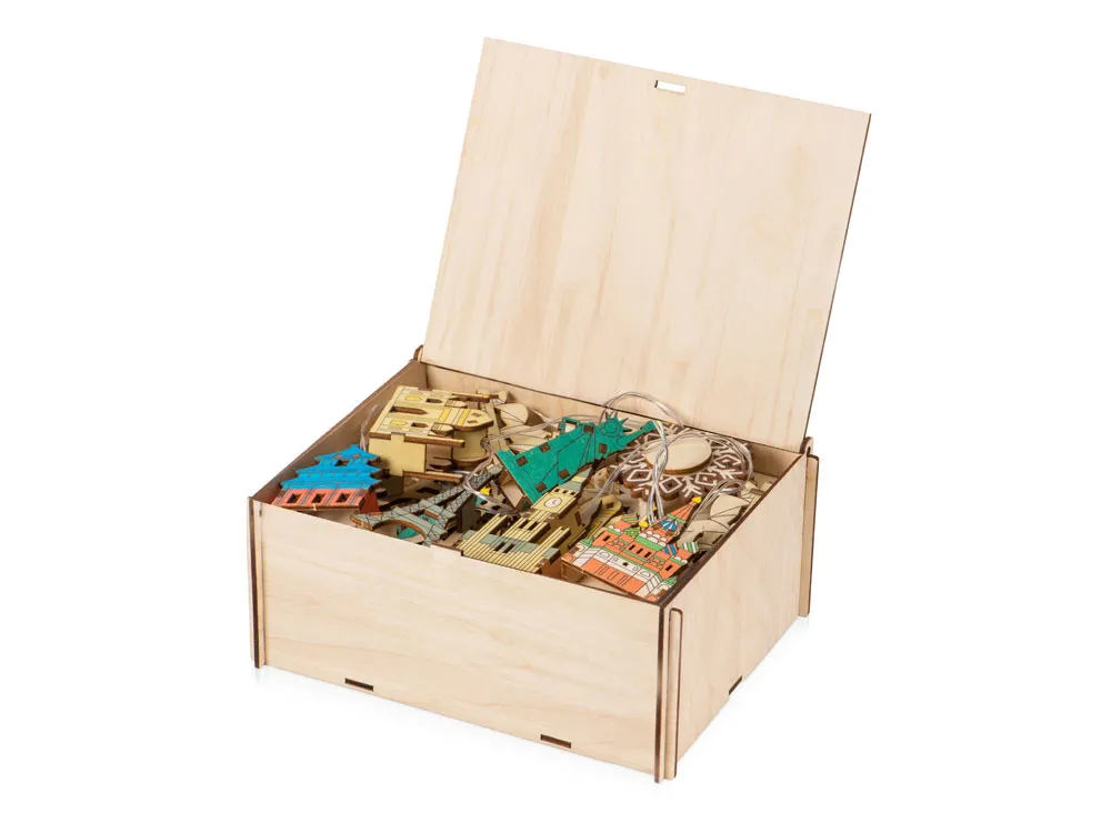 Новогодняя ёлочная гирлянда постоянного свечения с цветными фигурками достопримечательностей из натуральной березовой фанеры сделает процесс украшения ёлки или дома не только увлекательным, но и познавательным! Гирлянда состоит из 14 парных фигурок достопримечательностей и центрального элемента в виде снежинки. Снежинка и корпус батарейного блока имеют дополнительные съемные панели, которые поставляются в наборе в виде отдельных деталей и крепятся на изделие на двусторонний скотч. Эти элементы специально предназначены для нанесения и придания презенту уникальности. Гирлянда работает от 2-х батареек АА, которые входят в комплект. На гирлянде изображены следующие достопримечательности: Биг Бен (Лондон, Англия) Храм неба (Пекин, Китай) Эйфелева башня (Париж, Франция) Тадж-Махал (Агра, Индия) Статуя Свободы (Нью-Йорк, США) Сиднейская опера (Сидней, Австралия) Храм Василия Блаженного (Москва, РФ)