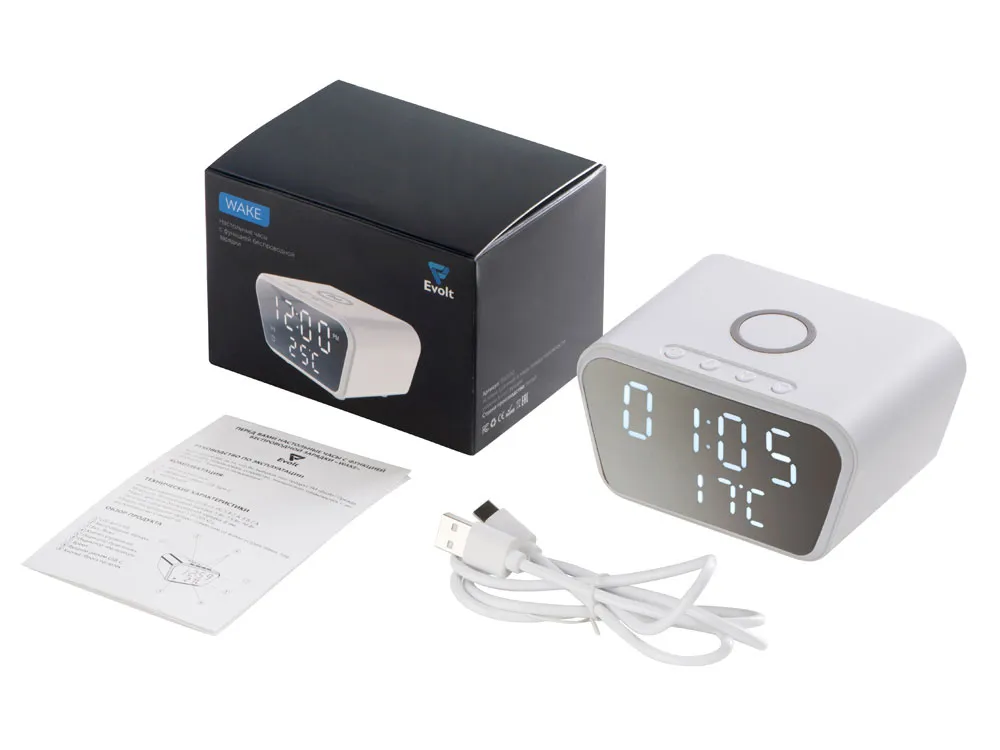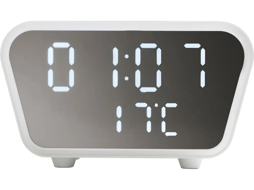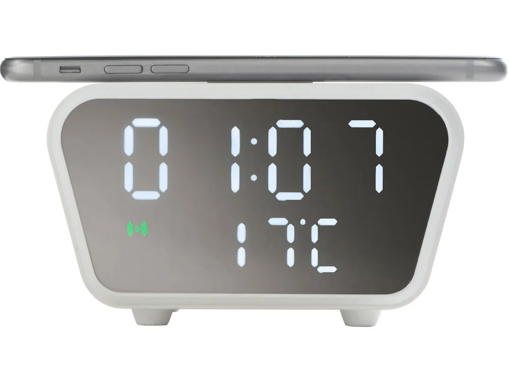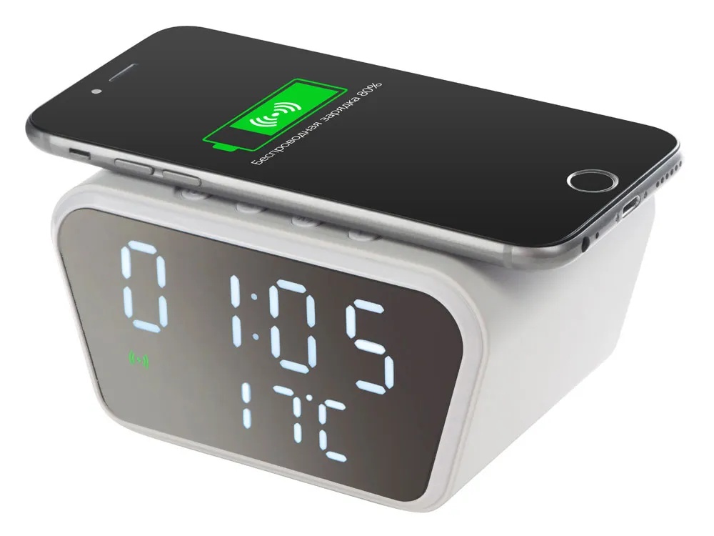 Настольные часы с функцией беспроводной зарядки позволят не только вовремя проснуться, но и восполнить за ночь уровень батареи вашего смартфона. Зеркальный LED-дисплей часов интересно выглядит в интерьере, а степень яркости можно изменить под себя. - будильник - отображает температуру в помещении - несколько режимов отображения данных - лаконичный дизайн часов уместно будет выглядеть в любом интерьере - регулировка степени яркости экрана