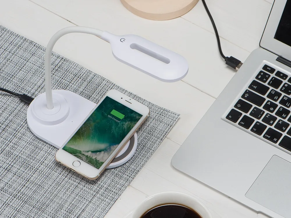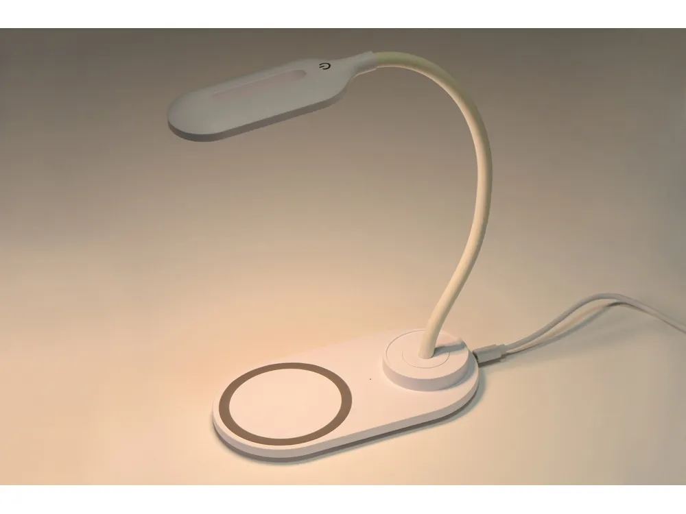 Универсальный и современный гаджет 2-в-1, для дома или рабочего места. Лампа на основе 10 LED элементов с гибким креплением и сенсорным включателем. Модуль беспроводной зарядки совместим со всеми устройствами, поддерживающими стандарт QI. • Быстрая беспроводная зарядка 10Вт. • 3 режима свечения - теплый, холодный, приглушенный. • Компактный размер.