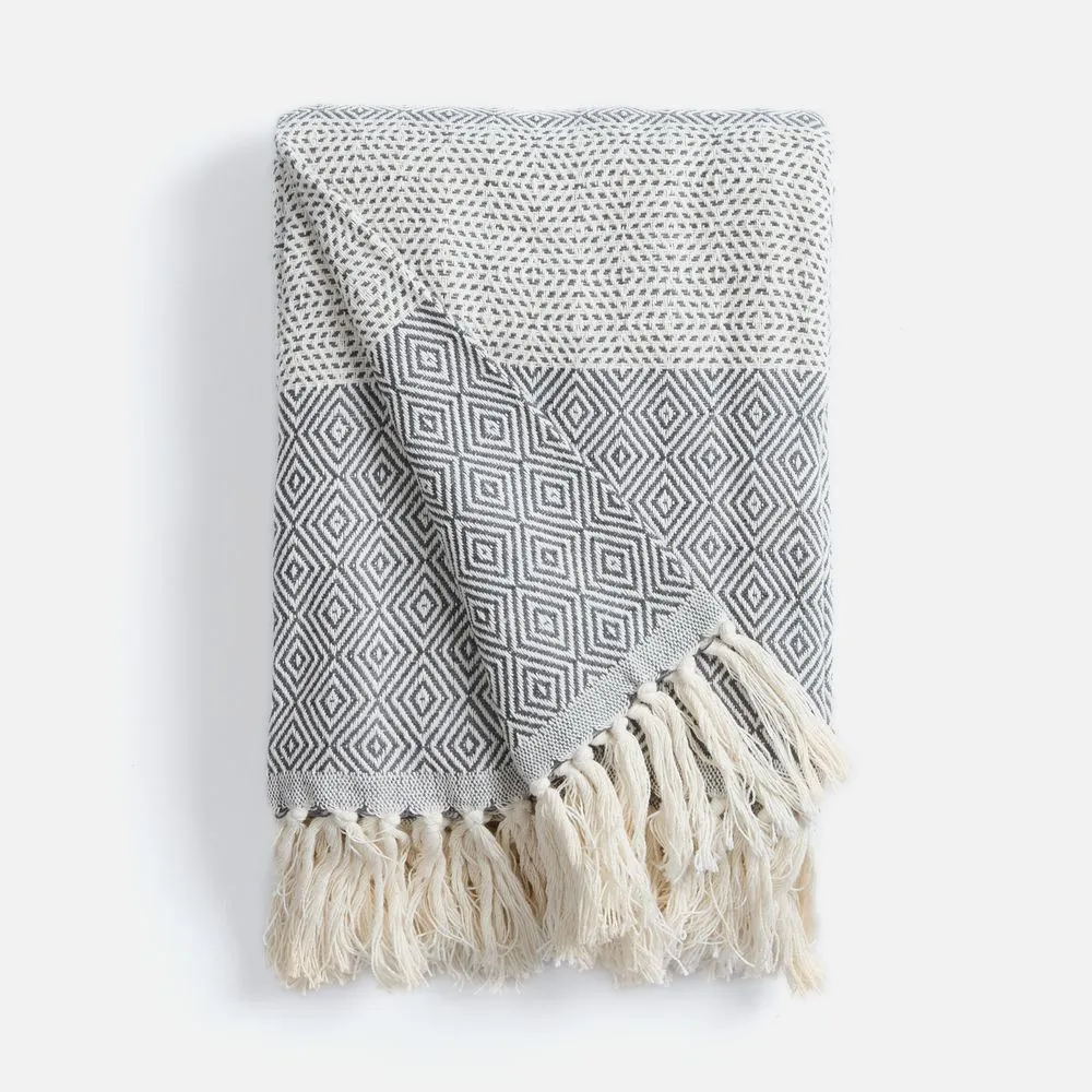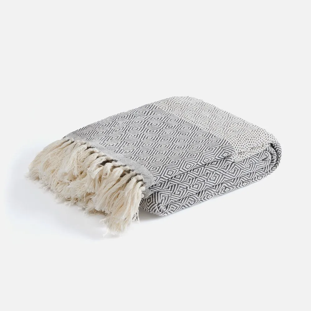 Приглушенные оттенки и динамичный геометрический рисунок на пледе Ladakh настраивают на созерцание, а его уютная мягкость — на приятный отдых в уюте и тепле.