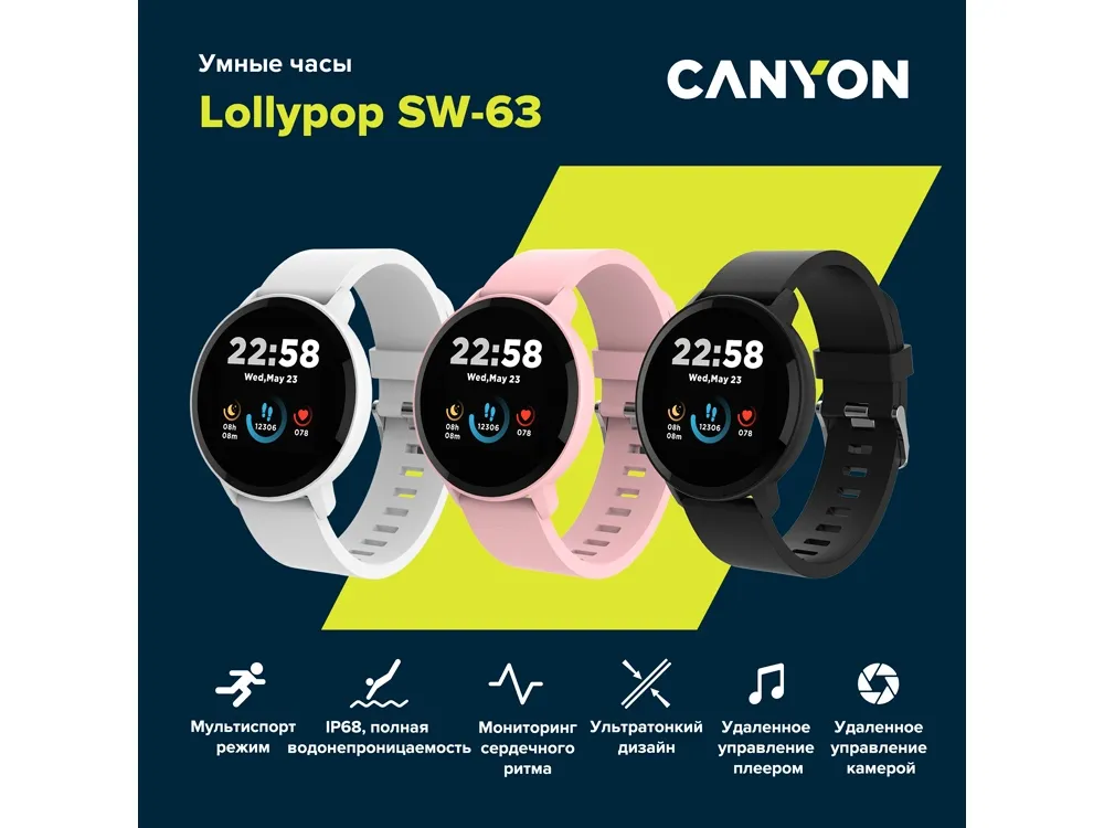 Эти смарт-часы совмещают функциональность и стильный дизайн. Часы мгновенно подключаются к смартфону через Bluetooth 5.0 и работают с фирменным приложением Canyon Life. Собирайте всю необходимую информацию о физической активности и качестве сна, и просматривайте ее в наглядном интерфейсе приложения. Прочный корпус и стандарт защиты уровня IP68 (полная водонепроницаемость) позволит не расставаться с любимым аксессуаром во время любой тренировки, включая плавание. Подберите удобный формат циферблата и контролируйте все нужные уведомления, а также камеру и музыку на телефоне прямо через экран часов. - 1.3-дюймовый полноэкранный сенсорный экран - TFT-дисплей - разрешение экрана 240×240 пикселей - Bluetooth версии 5.0 - время активной работы до 4 дней - уровень защиты IP68 - настраиваемые уведомления - варианты циферблатов - акселерометр и пульсометр - мульти спорт - детальная статистика активности - напоминания о малоподвижности - удаленное управление камерой и музыкальным плеером - секундомер - мониторинг сна - USB Type A кабель в комплекте - совместимы с Android 6.0+, iOS 12.0+