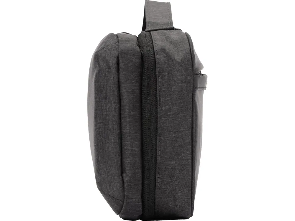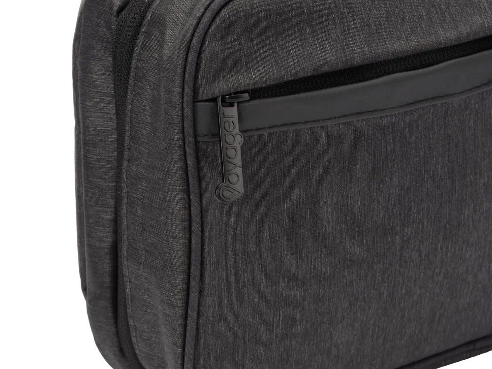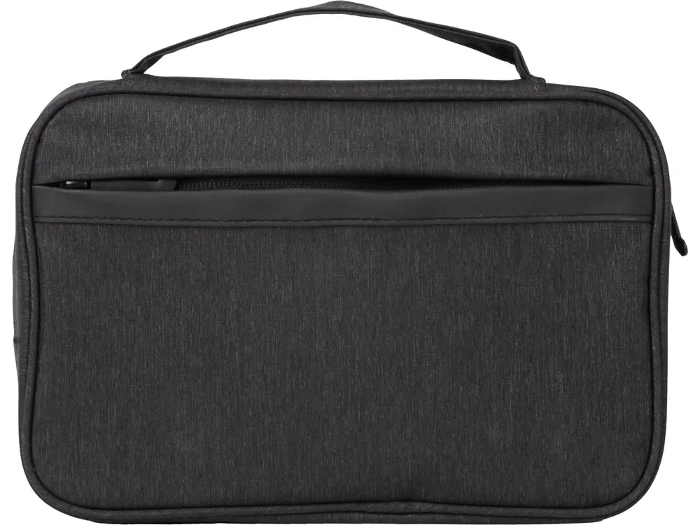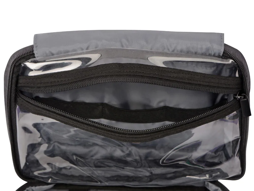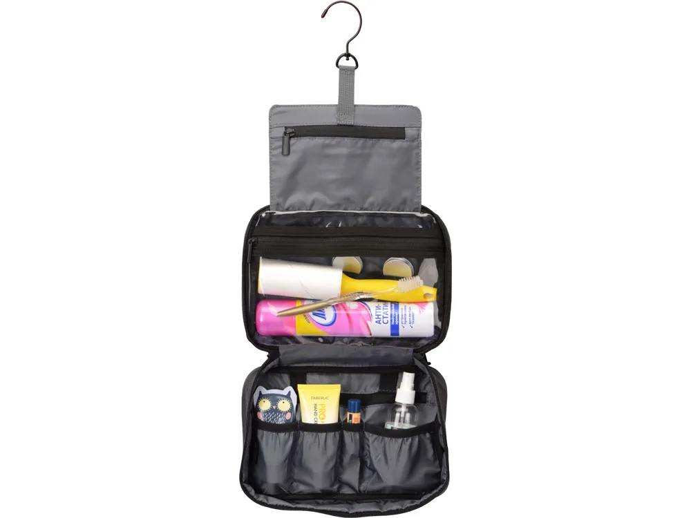 Вместительный несессер от Voyager состоит из множества карманов, отделений и фиксирующих резинок, которые позволяют разместить все необходимые вам в поездке вещи наилучшим образом. Несессер — часть линейки District от Voyager, выполнен в том же стиле и цветовой гамме, что позволяет создавать гармоничные комплекты и подарочные сеты с вашим нанесением. Несессер раскладывается как книжка на две створки и дополнительную секцию с металлическим крючком для подвешивания, карманом на молнии и фиксирующей резинкой. Металлический крючок позволяет подвешивать полностью заполненный несессер, поскольку способен выдержать большой вес, кроме того, вешалка проворачивается вокруг своей оси, что позволяет использовать эту модель с рейлами или в шкафу. Центральная секция имеет прозрачное большое отделение на молнии из ПВХ, внутри которого — три фиксирующих резинки для флаконов или иных принадлежностей. Благодаря выбранному материалу это отделение легко можно протереть влажной салфеткой, если содержимое бутылочки с шампунем или иной косметикой протекло. Вторая створка состоит из большого плоского кармана на молнии, двух резинок, которые подойдут для фиксации зубной щетки, двух узких и двух квадратных карманов. Имеет наружный карман на молнии. Материал несессера позволяет легко споласкивать его при необходимости, ткань быстро высыхает. - вместительный, имеет множество карманов, резинок и отделений - удобная ручка для переноски и металлическая вешалка-ключок - быстросохнущий материал - удобно раскладывается на три секции, подходит даже для длительных поездок