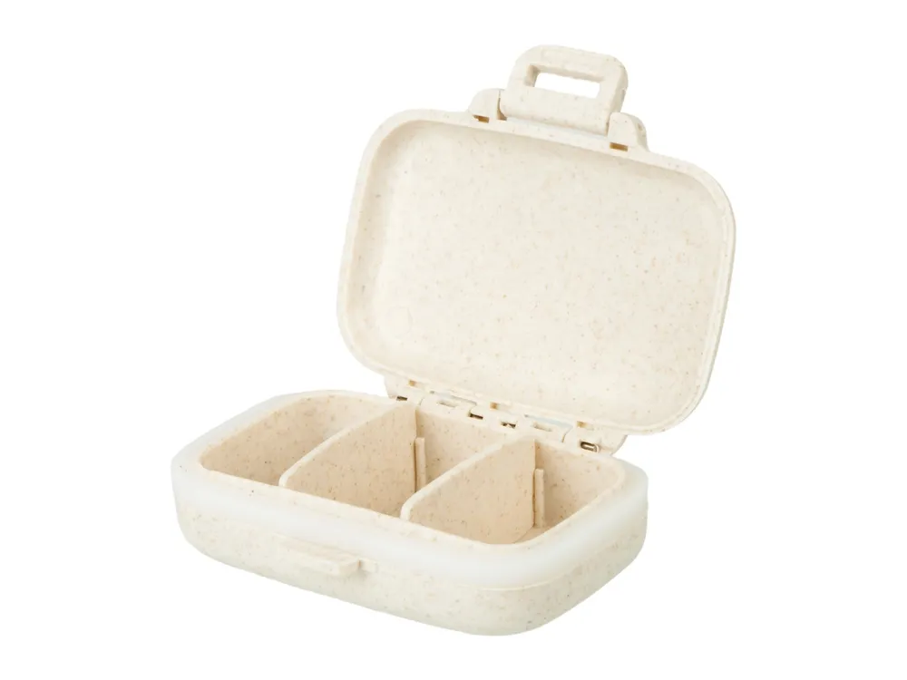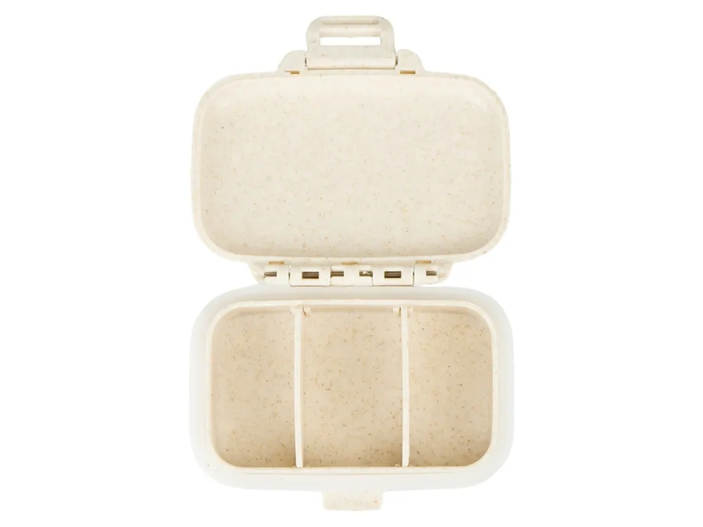 Таблетница с 3 отделениями для самых важных БАДов и таблеток, которые нужно принимать в течение дня, из переработанного пшеничного волокна.