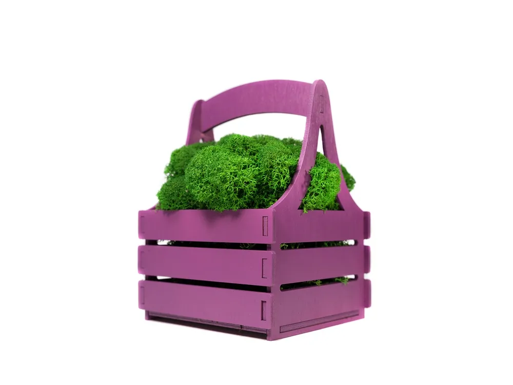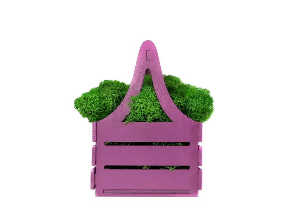 Корзинка со мхом станет прекрасным украшением вашего интерьера. - Композиция изготовлена из дерева и собирается вручную - Стабилизированный мох ягель - экологический природный материал: он не нуждается в поливе, не требует освещения, не собирает пыль, сохраняет привлекательный внешний вид в течение 7 лет, гипоаллергенный - Мох не болеет и в нем не заводятся насекомые - Для окраски мха используются пищевые красители, в связи с чем композиция может окрашивать руки - Изделие предназначено для декорации жилых и офисных помещений. Можно устанавливать в местах с отсутствием естественного освещения (ванны, туалетные комнаты и т.п.). Нельзя оставлять композицию под прямыми солнечными лучами, не поливать.