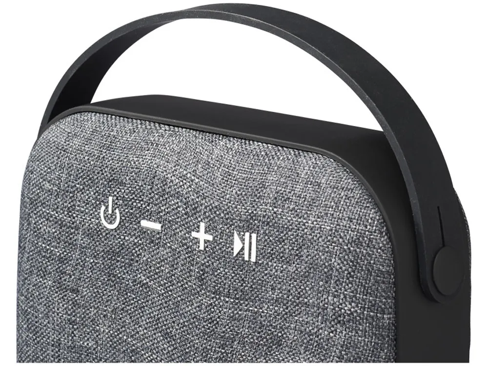 Динамик Bluetooth® с тканым материалом. Динаик Bluetooth® с элементами ткани совмещает отличный звук и трендовый стиль. Корпус динамика обернут в ткань. 3-ваттный динамик обеспечивает отличный звук, в то время как встроенный музыкальный контроллер и микрофон позволяют вам управлять музыкой и проводить конференц-звонки из любого места, не касаясь телефона. Рабочий диапазон Bluetooth® составляет 10 метров. Включает кабель USB - Micro USB и 3,5-мм аудио кабель. Время воспроизведения при максимальной громкости составляет 2 часа, а время зарядки составляет до 2 часов. АБС пластик/ ткань.