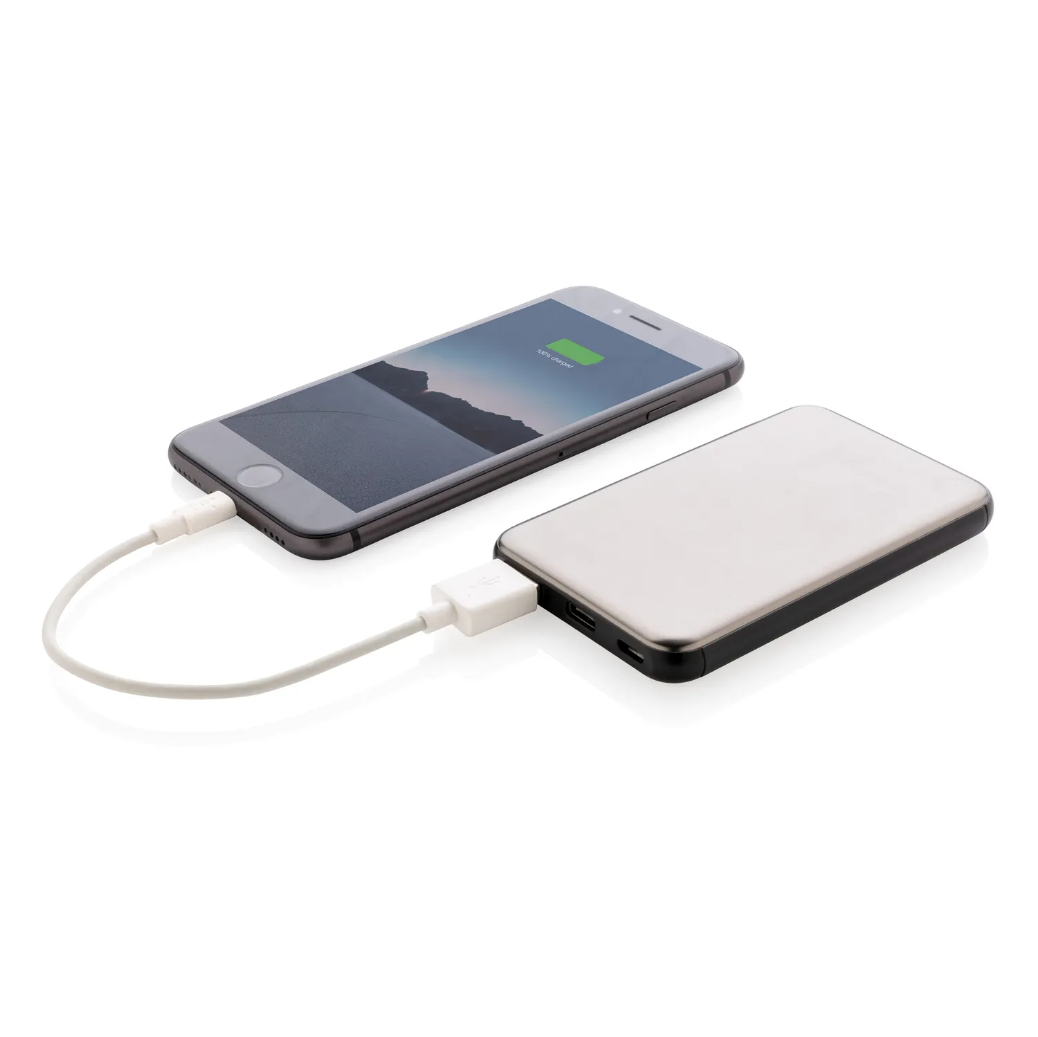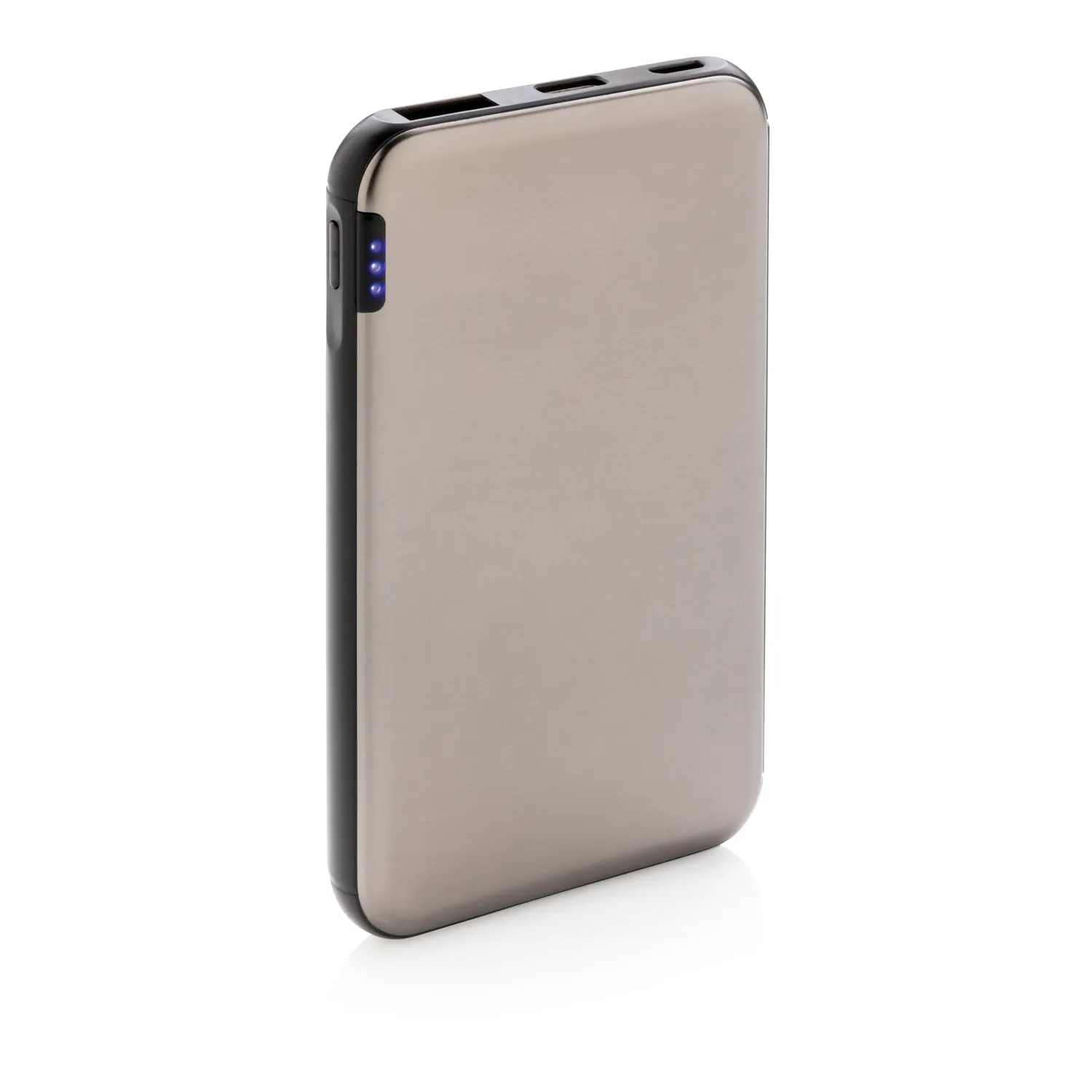 Ультра-тонкий внешний аккумулятор емкостью 5 000 мАч изготовлен из высококачественного алюминиевого сплава способен, благодаря своему уникальному дизайну, с легкостью уместиться в кармане. Энергии полностью заряженного литий-полимерного аккумулятора высокой плотности хватит, чтобы зарядить ваш смартфон до двух раз. Удобные световые индикаторы отображают уровень заряда, напоминая о необходимости подзарядить устройство. Напряжение как на входе, так и на выходе составляет 5В/2,1A.