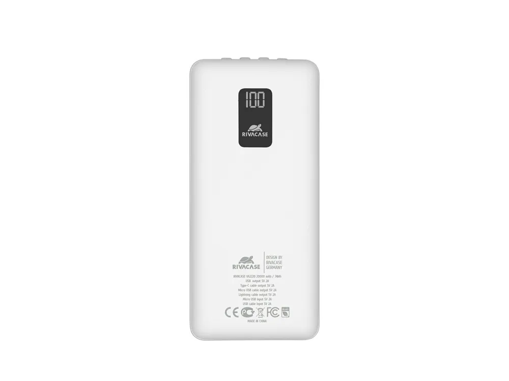 Литий-полимерный внешний аккумулятор емкостью 20000 мАч. Цифровой дисплей показывает уровень заряда. Защита от перегрузок, короткого замыкания, чрезмерного заряда и разряда. Автоматическое включение/выключение. Достаточно подключить кабель к разъему мобильного устройства и начнется заряд. Сквозной заряд - можно одновременно заряжать телефон и сам аккумулятор. Количество зарядов смартфона до 6 раз. (Зависит от емкости аккумулятора смартфона). ОСНОВНЫЕ ПРЕИМУЩЕСТВА: 4 встроенных кабеля - не надо искать подходящий кабель для Вашего телефона! Цифровой дисплей. Сквозной заряд.