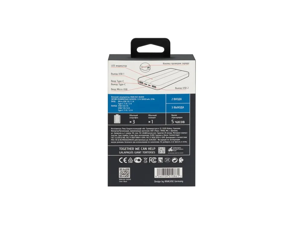 Литий-полимерный внешний аккумулятор емкостью 10000 мАч. Защита от перегрузок, короткого замыкания, чрезмерного заряда и разряда. Автоматическое включение/выключение. Достаточно подключить кабель к разъему мобильного устройства и начнется заряд. LED индикатор показывает уровень заряда (заряжен/в процессе заряда/разряжен). Количество зарядов смартфона до 3 раз (зависит от емкости аккумулятора смартфона). Кабель в комплекте. Заряжает 3 устройства одновременно! TYPE-C выход