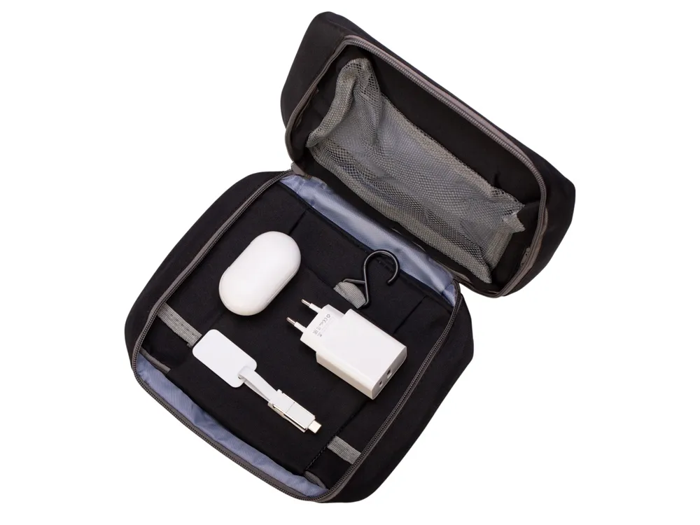 Все необходимые электронные аксессуары, которые могут пригодиться в поездках и путешествиях, собраны в этом наборе. Сетевое зарядное устройство имеет два порта: USB-C и USB-A. Поддержка зарядки 2-х устройств одновременно позволит заряжать в пути и планшет, и телефон сразу. Универсальный кабель для зарядки имеет широкий функционал благодаря нескольким видам разъемов: сдвоенный micro USB и Lightning (для устройств Apple), а также USB-C. Компактный размер помогает удобно использовать кабель в дороге, а также прикрепить его к связке ключей. Беспроводные TWS наушники с временем активной работы до 3 часов не дадут заскучать в пути. Степень защиты наушников от влаги и пыли IP54. Чехол оснащён портом type-C и индикатором заряда. Упаковка набора также не просто упаковка: эргономичный несессер с двумя большими отделениями и несколькими карманами – незаменимый спутник в поездках. • все необходимое и нужное с собой • в несессер поместится еще много всего • кабель можно использовать как брелок • время работы наушников от аккумулятора кейса - 6 часов