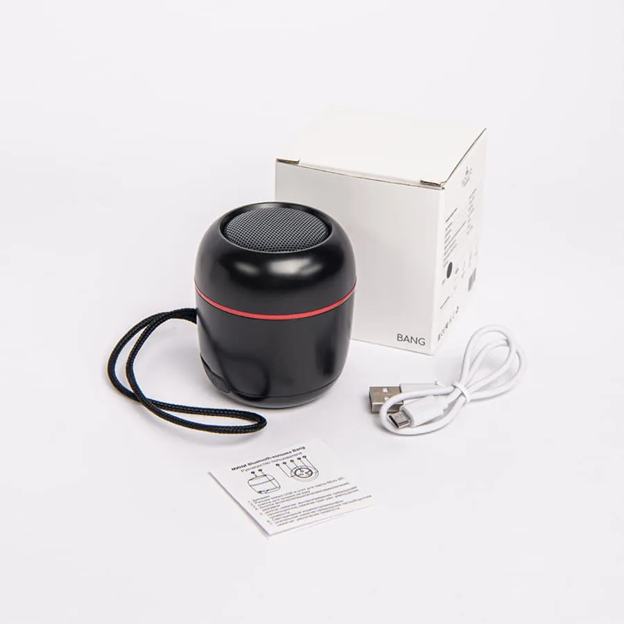 «Портативная Bluetooth-колонка Bang Материал: АБС-пластик. Динамик: 5 Вт. Батарея: 500 мАч Версия Bluetooth: V5.0 Диапазон Bluetooth: 10 м Время воспроизведения музыки: до 4 часов Размер: 64*72 мм Вес продукта: 159 г.Поддержка карты памяти, громкая связь, FM-радио