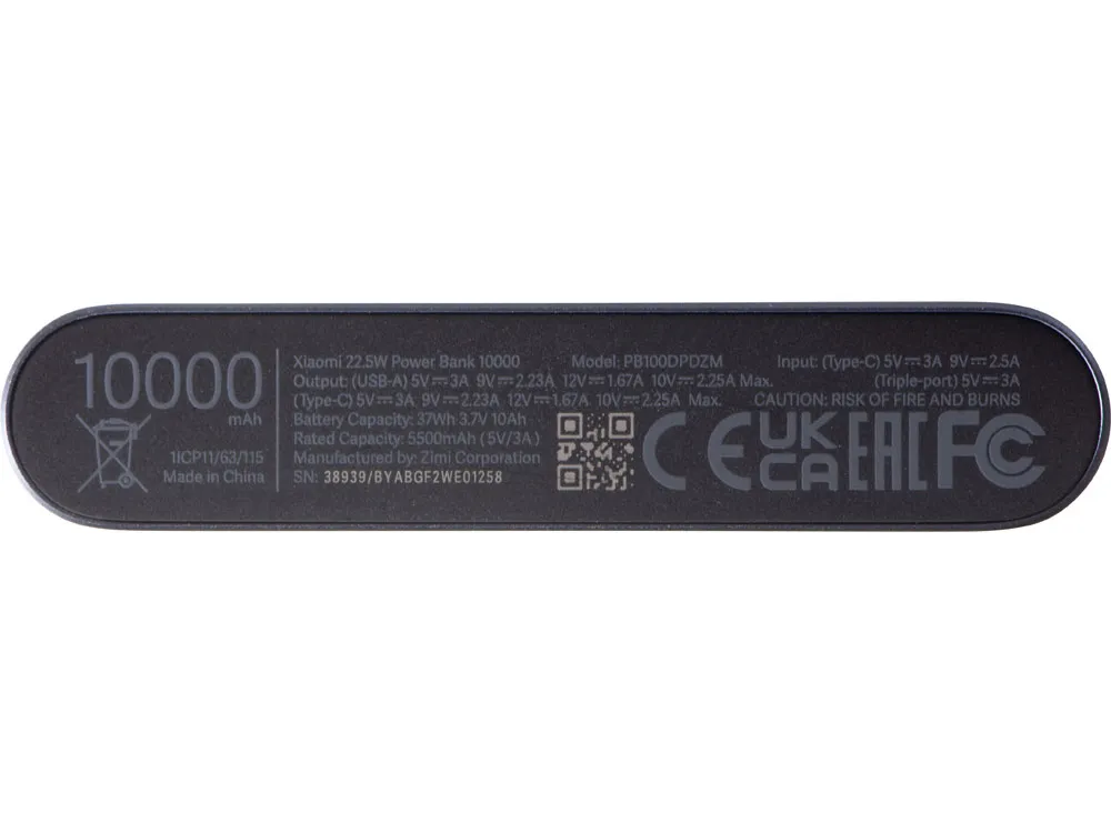 • Энергия 37 Вт∙ч (3.7В, 10000 мАч); • Хороший компаньон для путешествий, подходит для ежедневного использования; • Заряжает Mi 11 в 1,5 раза быстрее, iPhone 13 – в 1,9 раза, Switch – в 1,1 раза. • Порт USB-C для входной мощности до 22,5 Вт; портативное зарядное устройство можно зарядить до полной емкости всего за 4,5 часа. • Портативное зарядное устройство поддерживает максимальную выходную мощность 22,5 Вт для порта USB-C. Mi 11 можно зарядить до 100% за 1,6 часа. • Интерфейс USB-C может обеспечить максимальную мощность зарядки 20 Вт для iPhone 12 и iPhone 13, зарядку iPhone 13 на 56% за 30 минут. • 3 порта для вывода: USB-A x 2, USB- C x 1; • Работает безопасно при одновременной зарядке 3 устройств.