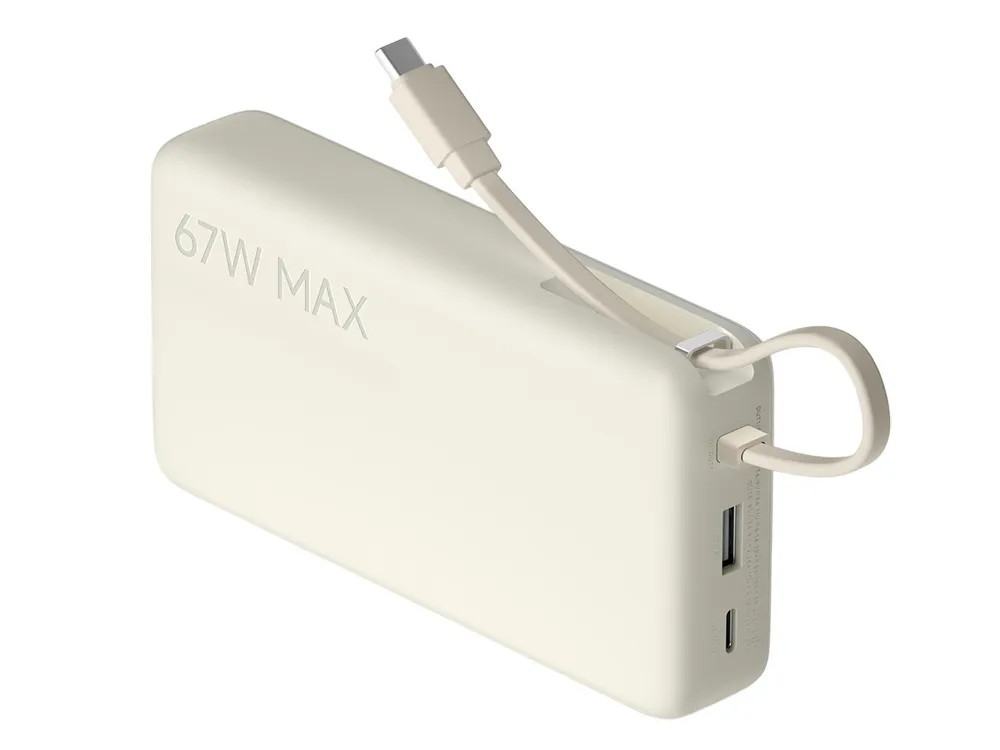 Xiaomi 67W Power Bank 20000 (Integrated Cable) — это мощный внешний аккумулятор с ёмкостью, эквивалентной 20 000 мА·ч, и удобным встроенным USB‑C кабелем, который избавляет от необходимости носить отдельный провод. Пауэрбанк поддерживает быструю двустороннюю зарядку до 67 Вт через встроенный кабель, а также имеет дополнительный USB‑C и USB‑A порт — это позволяет быстро заряжать смартфоны, планшеты, ноутбуки и другие устройства. Сам аккумулятор эффективно подзаряжается с входной мощностью до 65 Вт, что позволяет полностью восстановить заряд примерно за ~2,5 ч. Устройство оснащено цифровым дисплеем, который показывает остаток энергии в процентах, и многоуровневой системой защиты для безопасной и стабильной работы. Компактный корпус соответствует авиационным стандартам (<100 Вт*ч) и подходит для путешествий и повседневного использования.