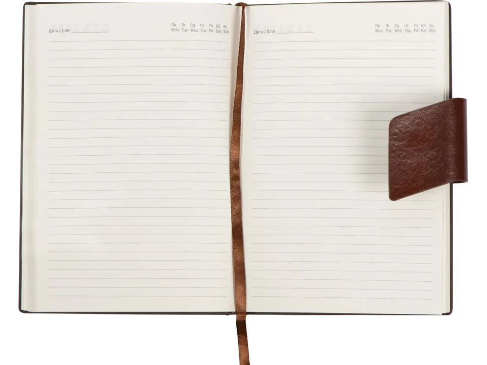 Бизнес-блокнот Monoi прослужит своему владельцу очень долго благодаря надежной конструкции: обложка не боится ежедневного использования и механических повреждений, а скошенный клапан дополнительно укрепляет бумажный блок, защищая его от смятия листов. Бумажный блок выполнен из бумаги, полученной из древесины из специальных восполняемых лесных ресурсов, имеет сертификат FSC, международной некоммерческой организации лесного попечительского совета. Линовка — недатированный ежедневник, а на первых страницах вы встретите специальные листы для постановки целей на год и подведения итогов, а также другие трекеры. Отдельно отметим гладкость бумаги — писать на ней одно удовольствие. - 128 листов - твердая обложка обеспечивает надежность конструкции блокнота - бумага из восполняемых лесных ресурсов - ляссе для быстрой навигации - трекеры и специальные страницы для планирования