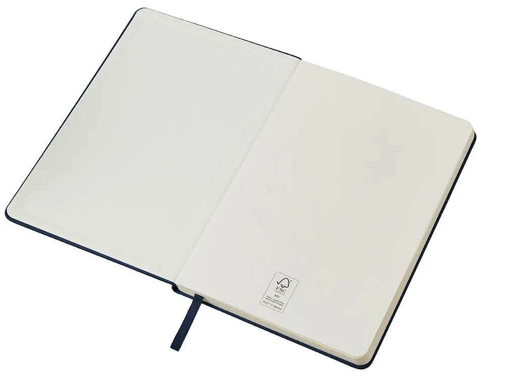 В блокноте 192 страницы кремовой бумаги 70 г/м2 с сертификатом ответственного лесопользования FSC.