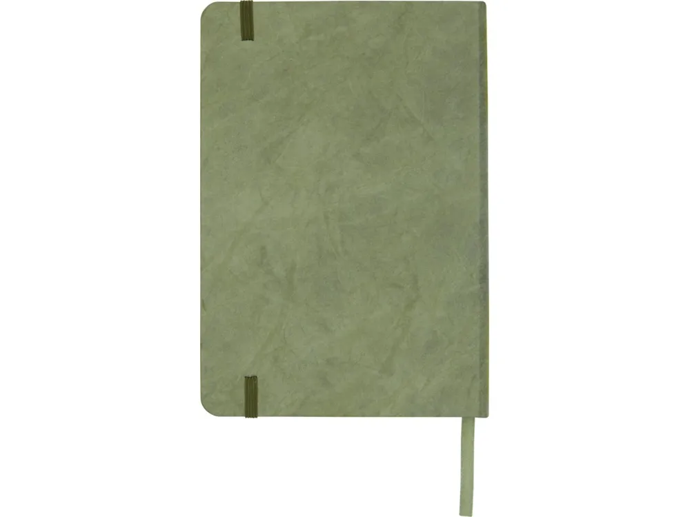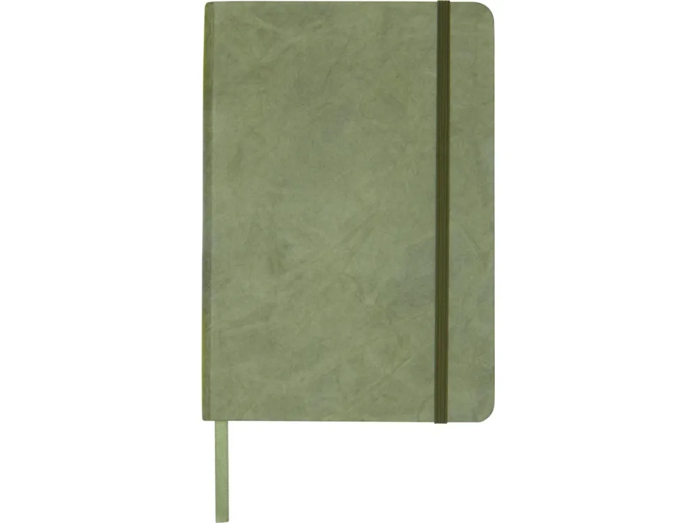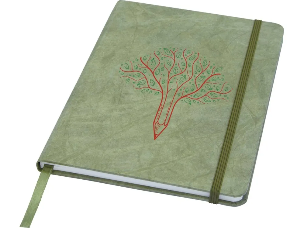 Устойчивый на разрыв блокнот формата A5 с внутренними страницами из каменной бумаги. В производстве каменной бумаги не используется дерево, а на сам процесс изготовления затрачивается гораздо меньше энергии в сравнении с производством переработанной или целлюлозной бумаги. Блокнот водонепроницаемый, поэтому вы сможете легко вытереть пролитую на него жидкость. Имеет ленту-закладку соответствующего цвета и эластичную резинку, а также 60 листов в линию плотностью 120 г/м², изготовленных из каменной бумаги. В упаковке из картона.
