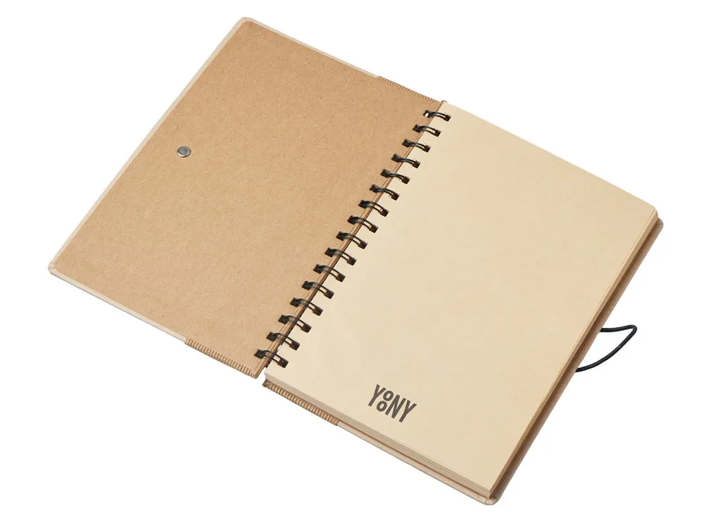 Крафтовый блокнот на спирали с фиксирующей резинкой. 80 листов коричневой бумаги 70 г/м2.