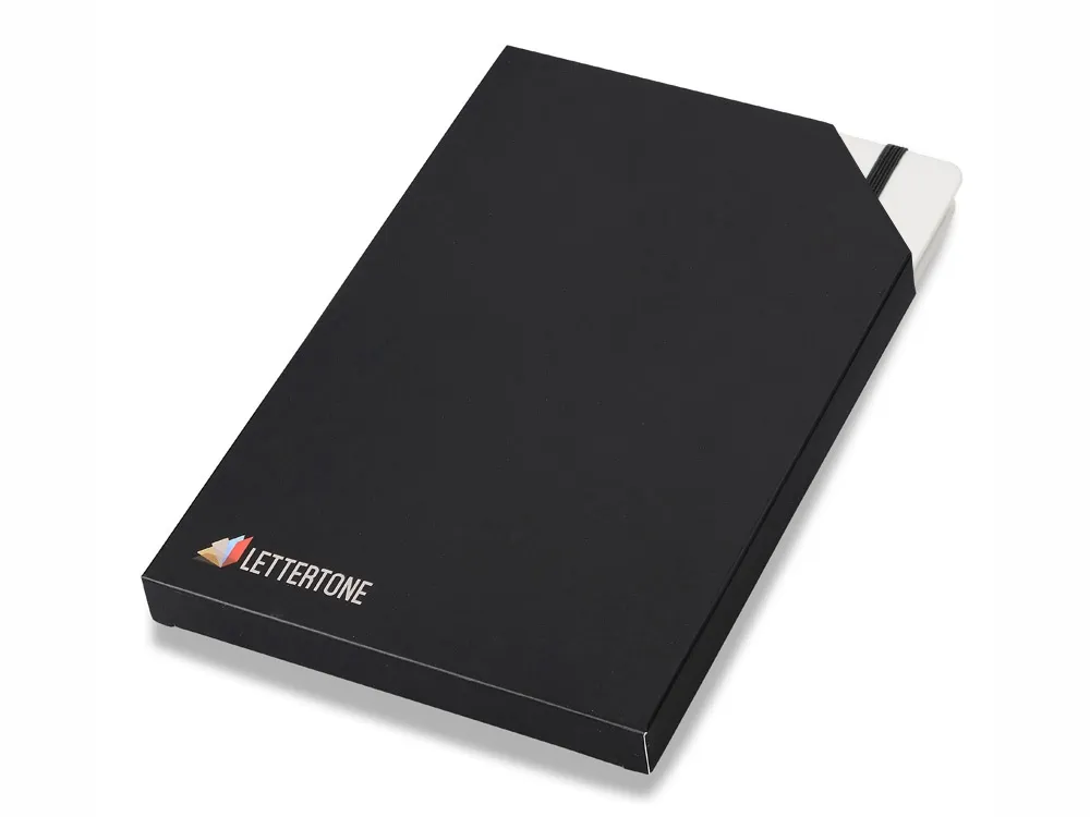 Белый линованный блокнот формата А5 с закладкой и эластичной застежкой идеально подойдет для записи секретов. Еще одна тайна спрятана в его обложке – под ее верхним слоем белого цвета скрыт контрастный фон, который становится виден при тиснении.