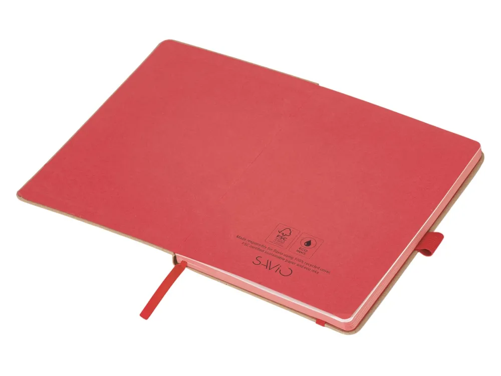 Твёрдая обложка блокнота выполнена из крафта - экологичного материала, который станет отличной основой под нанесение логотипа или принта. Блокнот имеет яркие акценты в виде ляссе, петли для ручки, резинки, срезов и форзацев. Бумажный блок на 80 листов выполнен из бумаги, полученной из древесины из специальных восполняемых лесных ресурсов, имеет сертификат FSC, международной некоммерческой организации лесного попечительского совета. Линовка - выполнена специальными экочернилами, при изготовлении которых используется меньшее количество энергии. - формат А5; - изготовлен с заботой о природе; - универсальный дизайн под любое нанесение.