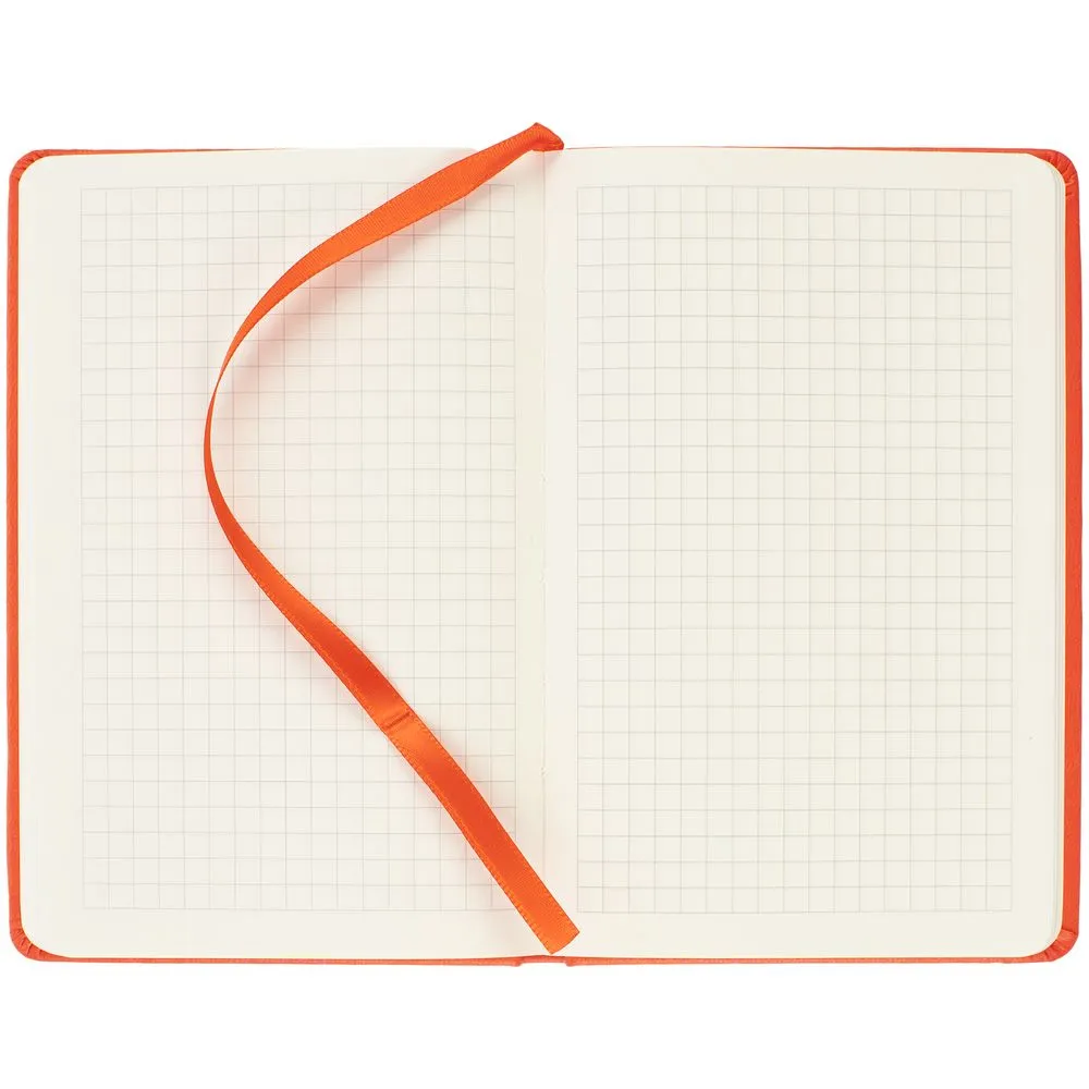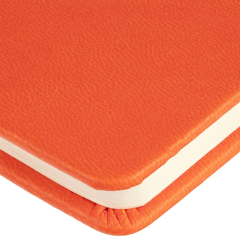 Твердая обложка из материала Latte, оранжевый, ляссе в цвет обложки.