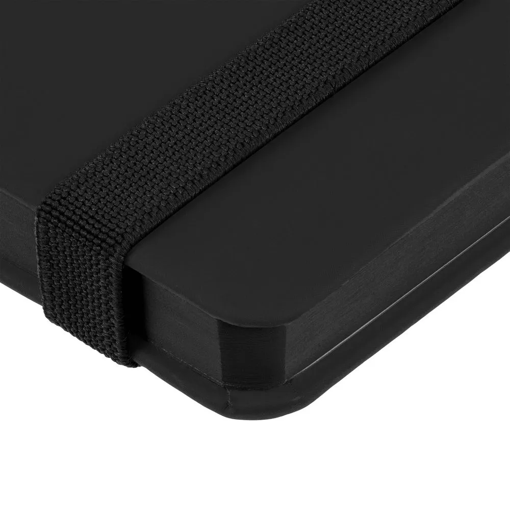 Блокнот в твердой обложке, выполнен из материала Soft Touch Ultra, красный РР, дополнен резинкой и ляссе в цвет обложки.