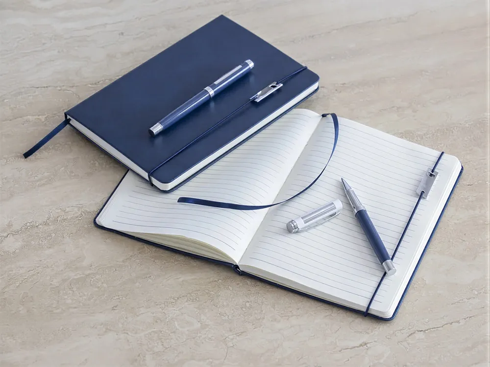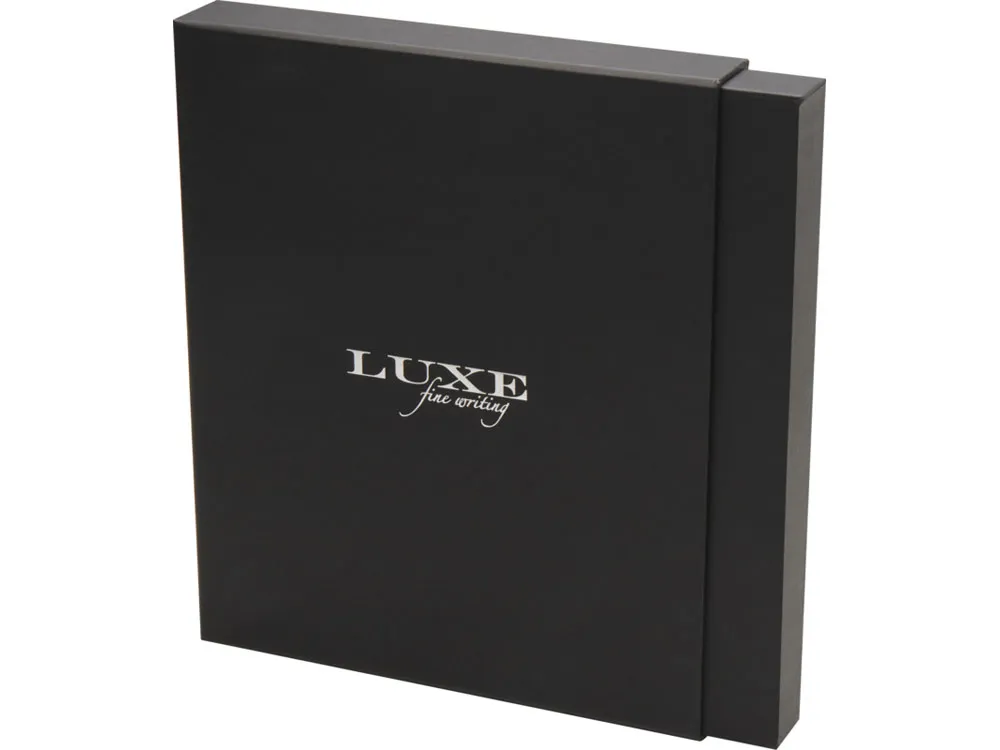 Набор Legato — это элегантное сочетание блокнота формата А5 и ручки-роллера. Ручка имеет верхний корпус из переработанной латуни, сертифицированной RCS, с серебряным хромированием, нижний корпус с цветным напылением, металлические хромированные аксессуары и логотип LUXE на среднем кольце. Цвет чернил: синий. Длина непрерывной линии: 400 метров. Диаметр пишущего узла: 0,7 мм. В комплект входит дополнительный стержень черного цвета. В блокноте 80 листов разлинованной кремовой бумаги плотностью 80 г/м², обложка из полиуретана, похожего на кожу, эластичная застежка, лента-закладка. Металлический шильд на эластичной застежке. Поставляется в картонной подарочной коробке.