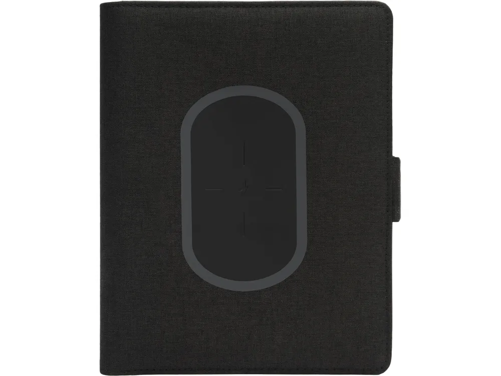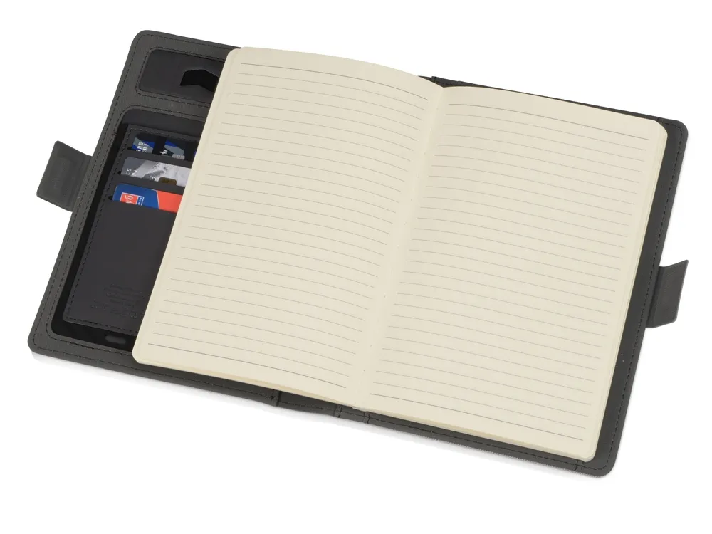 Органайзер «Powernote» — стильный бизнес-подарок, который в полной мере воплощает идею многофункциональности. С его помощью можно заряжать гаджеты как беспроводным способом, так и через кабель, эргономично хранить целый ряд предметов — от ручек и проводов до кредитных карт — и даже делать записи. Элегантность внешнего вида дополняется приятной текстурой обложки из мягкого полиэстера и высоким качеством внутренней отделки с элементами soft-touch покрытия. Практичный и технологичный аксессуар, который в состоянии заменить сразу несколько вещей. - Встроенный пауэрбанк емкостью 5000 мАh. - Возможность зарядки как беспроводным способом, так и через кабель. - Удобная магнитная застежка. - Качественные материалы. - Отделение для телефона. - Блокнот для записей 64л.