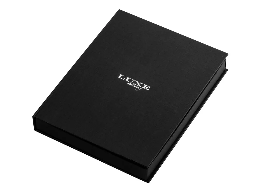 Эксклюзивный блокнот формата A5 с обложкой из термополиуретана, черной лентой-закладкой, застежкой на магните и 80 линованными листами (80 г/м²) кремового цвета. Предлагается с шариковой ручкой.