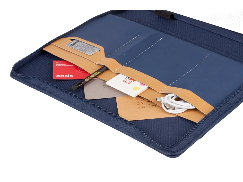 Папка-портфолио "Harvey" от Lettertone - незаменимый органайзер, который поможет держать все нужные вещи под рукой. Обложка Harvey выполнена из переработанного пластика (RPET). Внутри папки 40 листов FSC бумаги плотностью 80г/м2, изготовленной с соблюдением экологических норм, на обложке - карман для визиток или бумаг. Также есть петля для ручки и карманы для телефона, проводов, банковских карточек и/или визиток и даже для планшета. - плотная твёрдая обложка не даст бумагам помяться; - несколько карманов разного размера; - петля для ручки; - 40 листов А4.