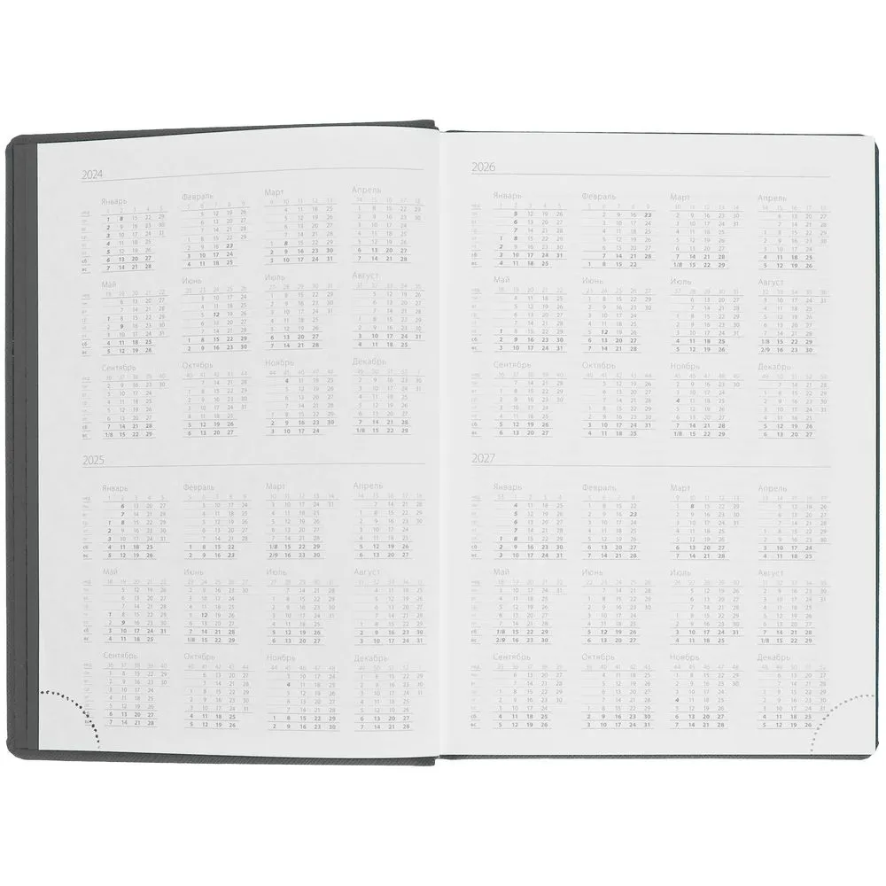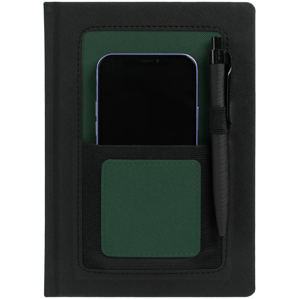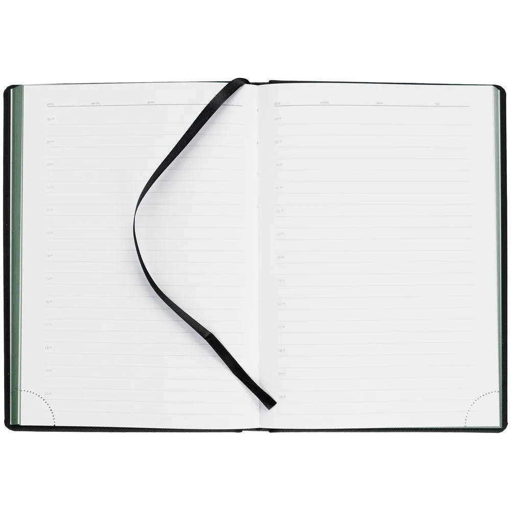 Ежедневник с карманом шириной 10 см из резинки, в котором удобно разместить мобильный телефон или визитки для переговоров.
