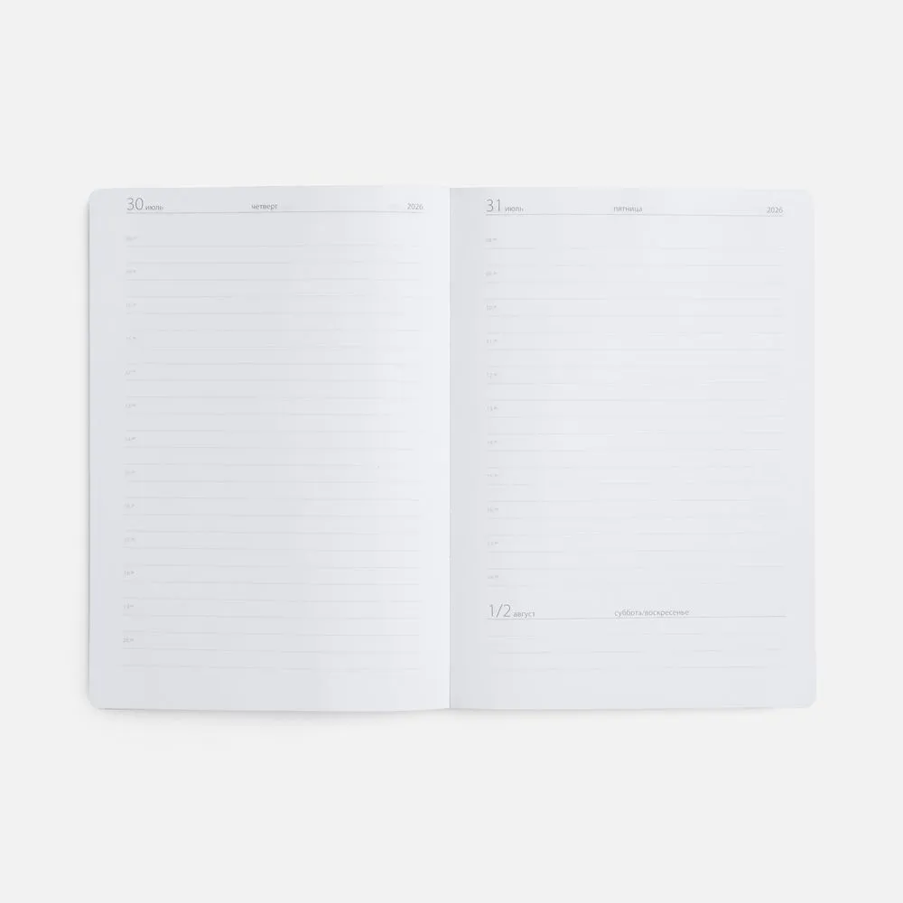 Ежедневник с твердой обложкой выполнен из материала Nice Touch, черный АА, и дополнен резинкой шириной 1 см и ляссе черного цвета.
