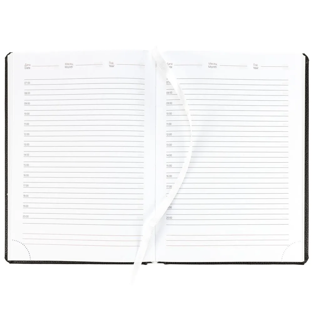 Ежедневник в твердой обложке c поролоном, выполнен из материала La Fite, черный АА, дополнен ляссе белого цвета.