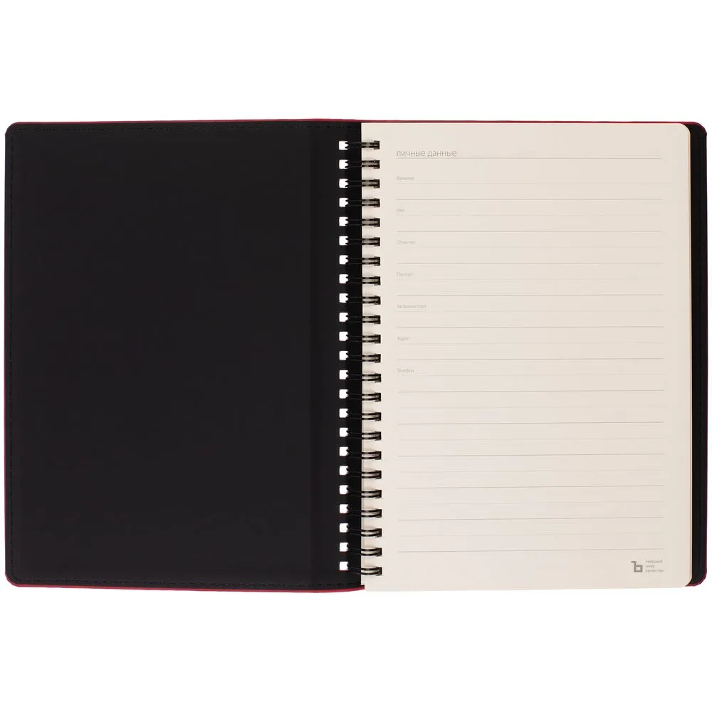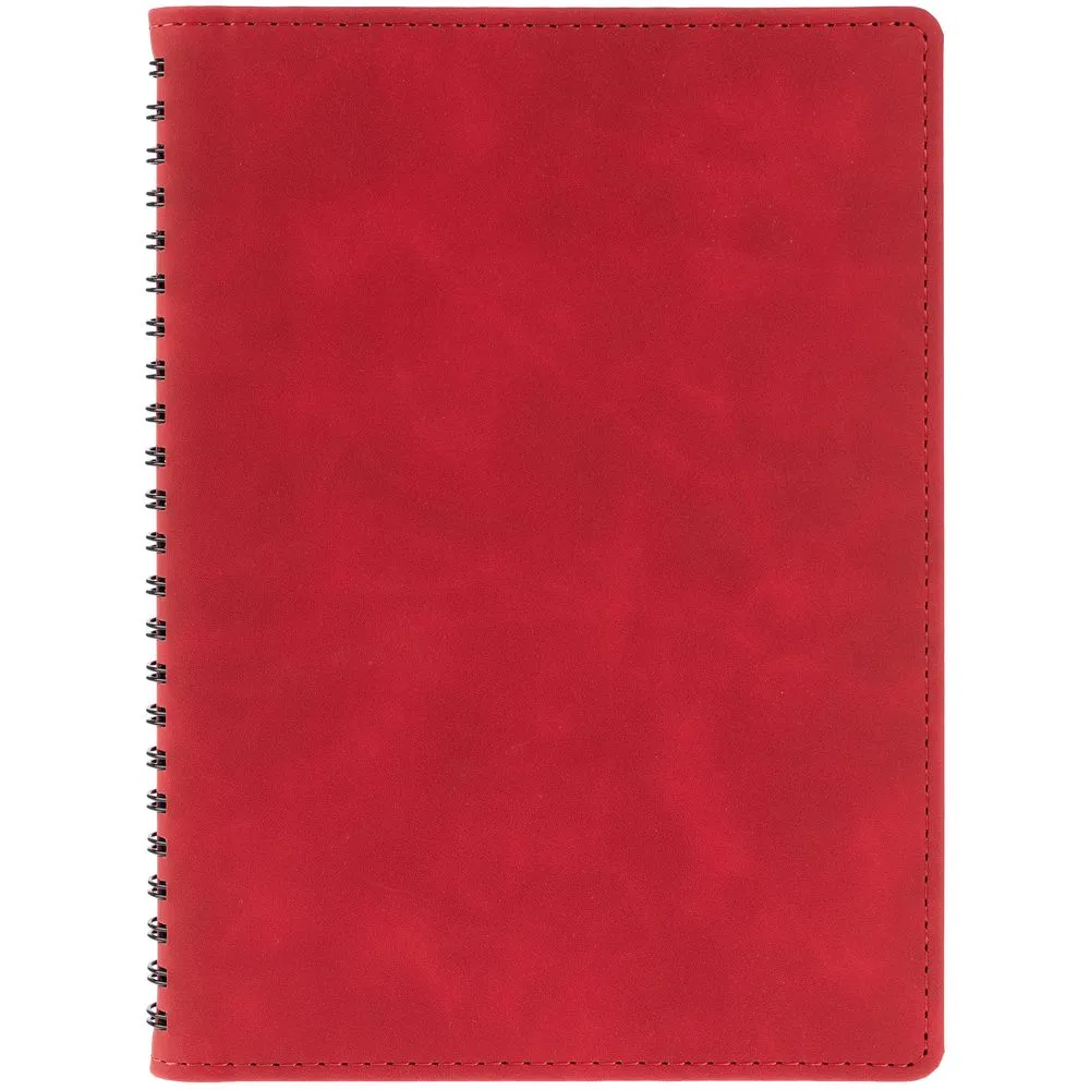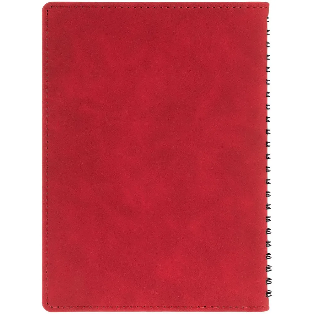 Ежедневник с блоком на пружине в твердой обложке, выполнен из материалов Nubuk Touch, серый СС и Soft Touch, черный AA.