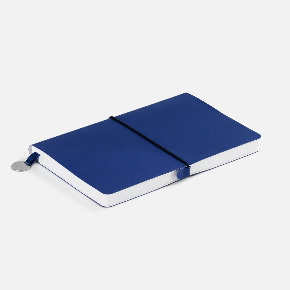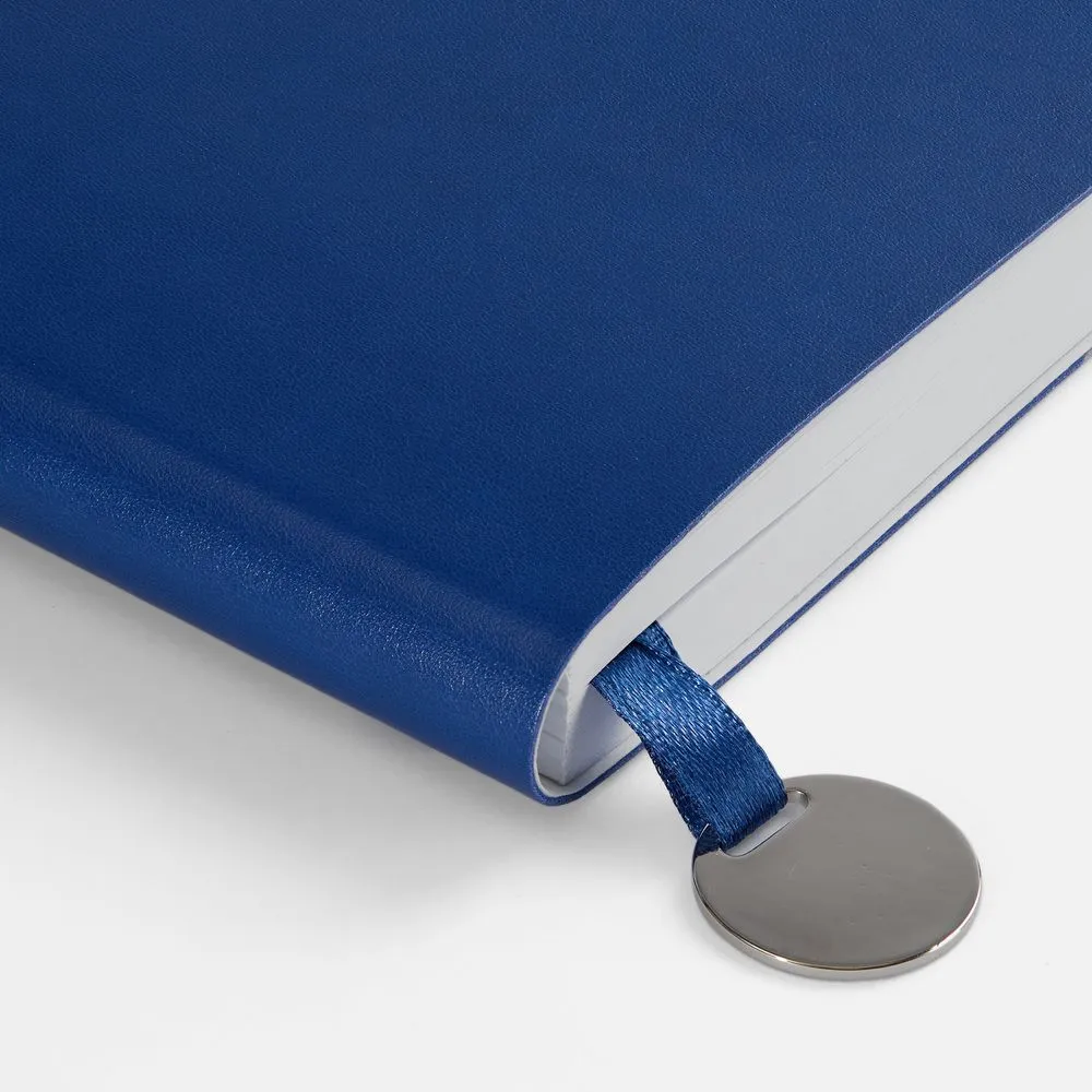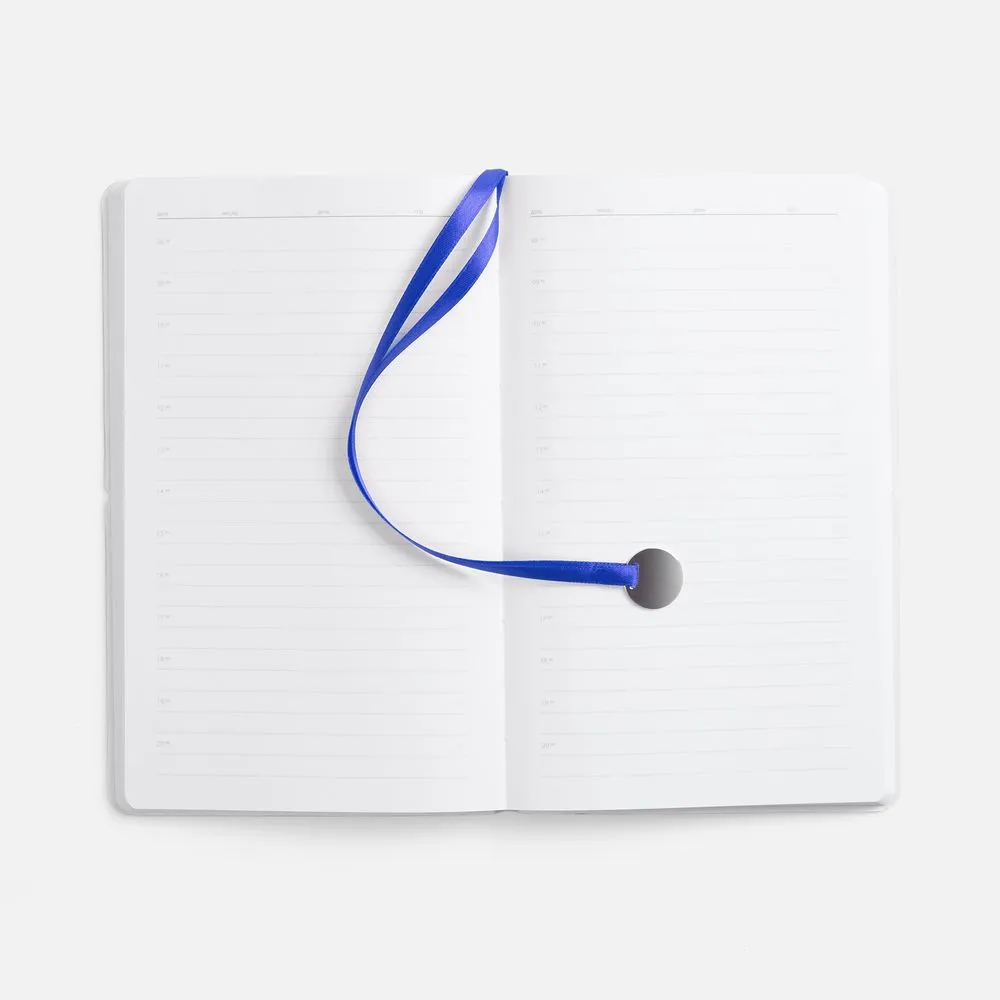 Ежедневник с гибкой обложкой, выполнен из материала Waltz, серебристый DD, дополнен ляссе в цвет обложки с металлическим шильдом.