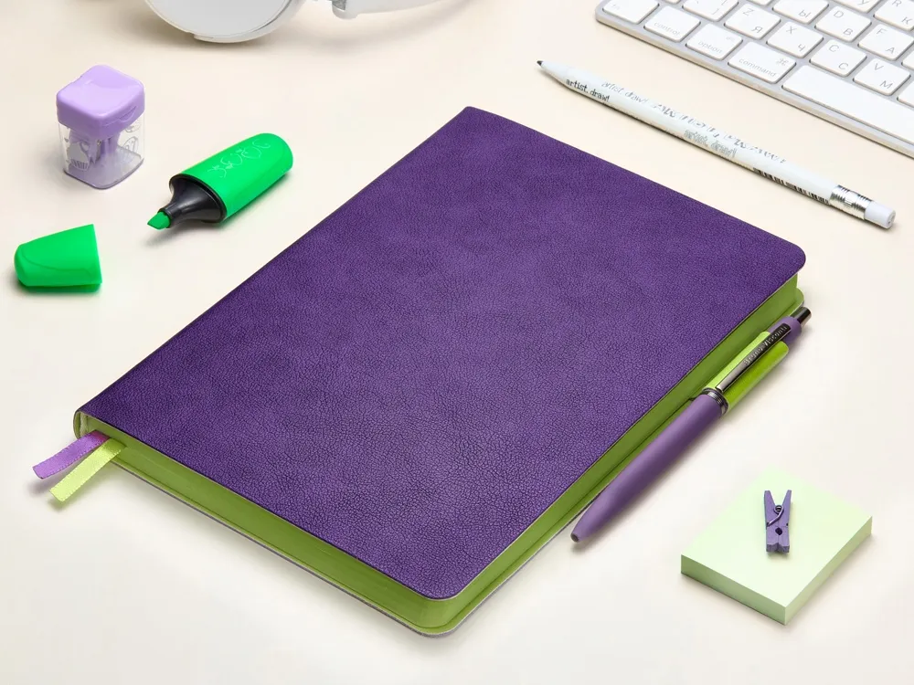 Датированный ежедневник бренда Bruno Visconti «Boston» формата A5 с гибкой обложкой – стильный и функциональный аксессуар. Фактурная обложка придает ему элегантный вид, а яркий цветной срез добавляет оригинальности. Двойное ляссе, выполненное в контрастных цветах, обеспечивает удобную навигацию. Для дополнительного удобства предусмотрен держатель для ручки. Внутренний блок выполнен из бежевой бумаги плотностью 70 г/кв.м и содержит страницу для персональных данных, 17 страниц справочной информации и датированные страницы с почасовой разметкой. Ежедневник «Boston» – отличный выбор для тех, кто ценит качество и продуманный дизайн.
