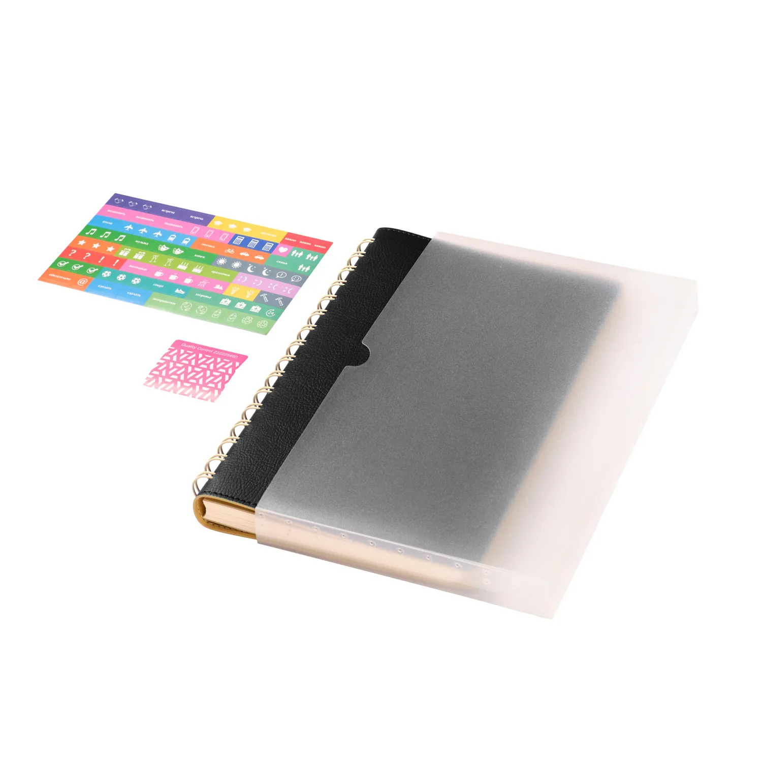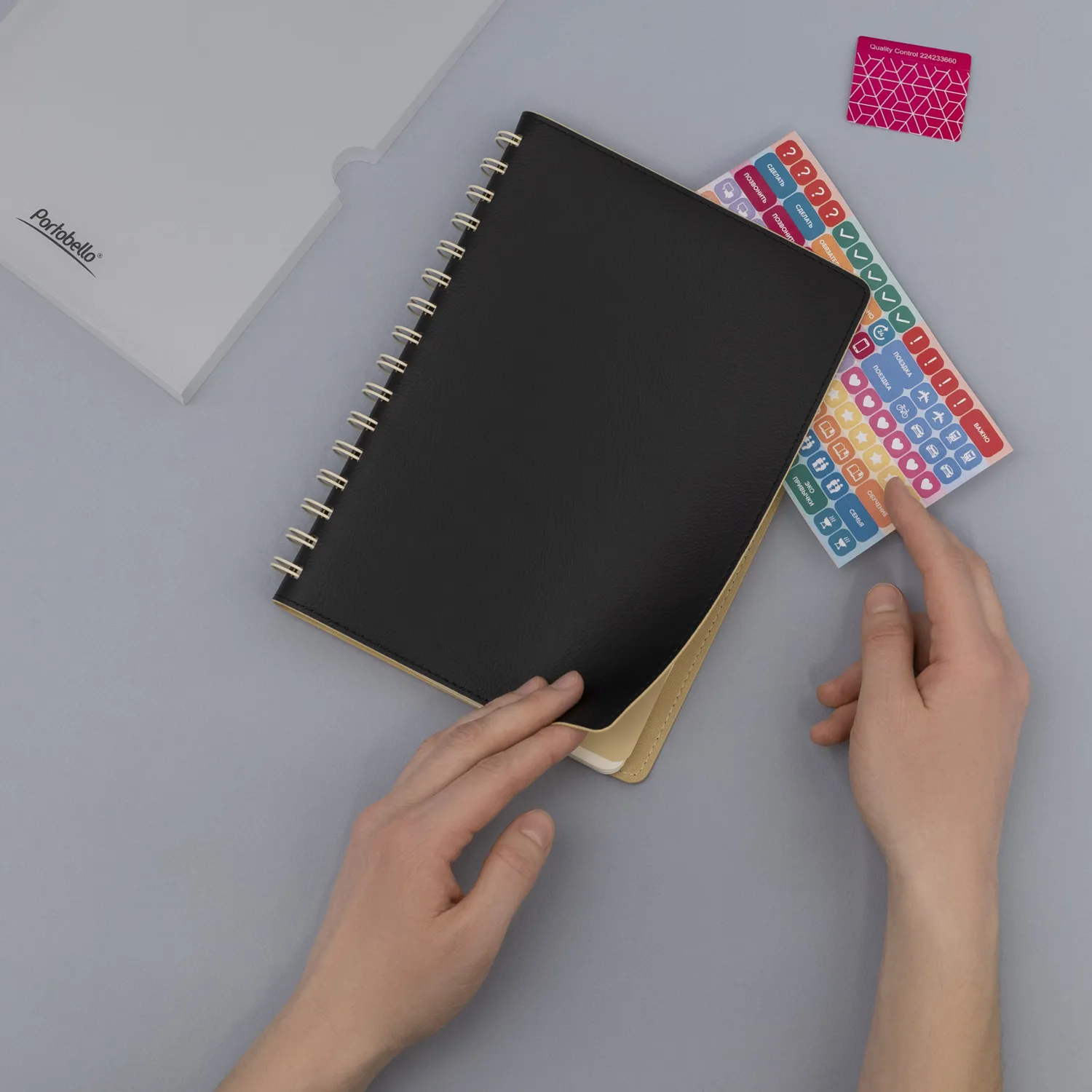 Полускрытая пружина в тон внутреннего материала обложки