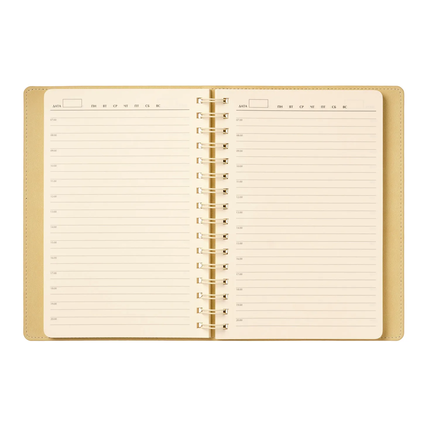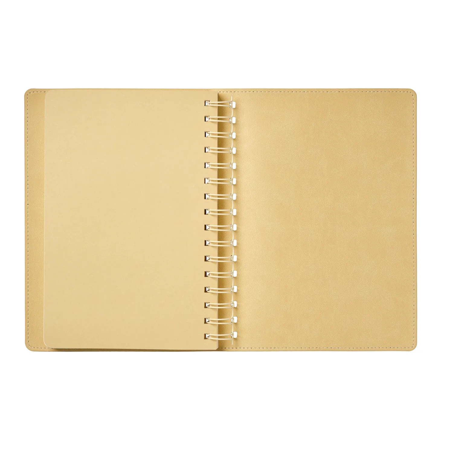 Внутренний блок с кремовыми страницами и срезом гармонично сочетается с нежным оттенком форзаца и нахзаца, повторяющим цвет внутреннего материала обложки. Надежная полускрытая пружина обеспечивает удобство использования и долговечность.