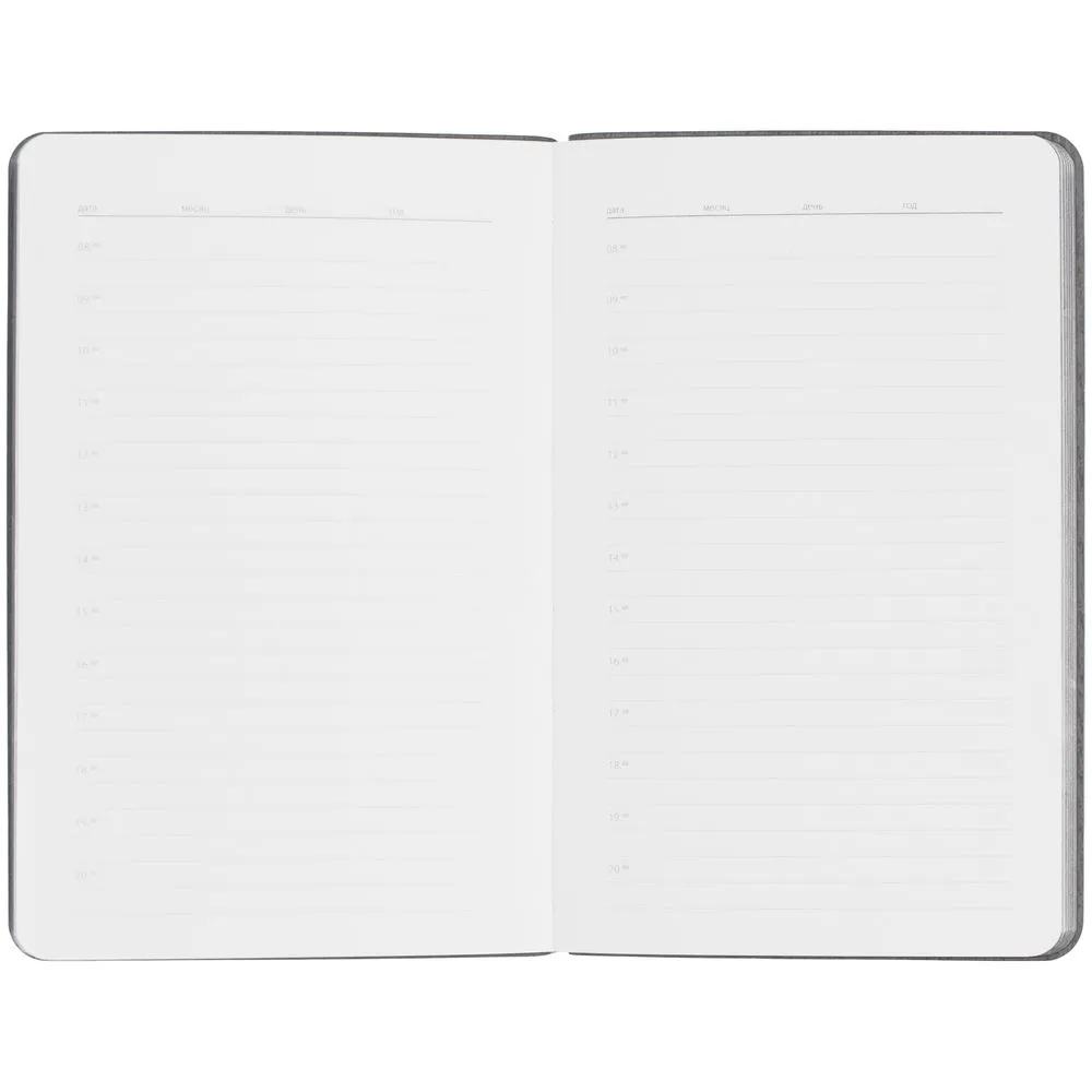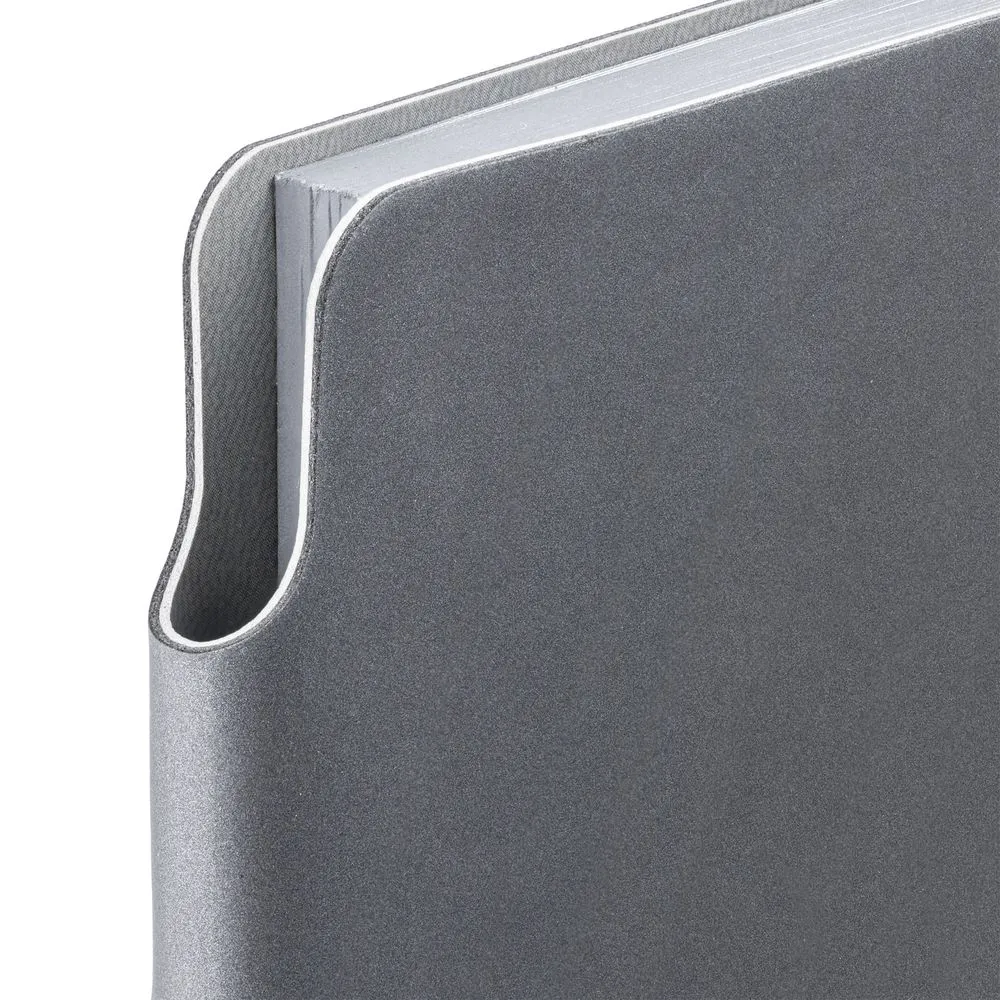 Ежедневник с гибкой обложкой выполнен из материала Soft Touch Ultra, голубой JJ и серого Latte (внутренняя часть обложки).