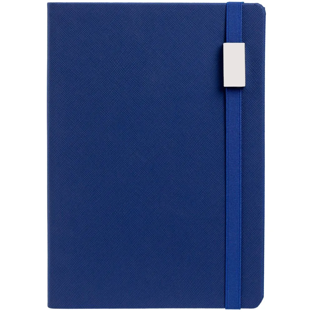 Ежедневник с полутвердой обложкой выполнен из материала Nice Touch, серый СС, и дополнен резинкой шириной 1 см с металлическим шильдом и ляссе серого цвета.