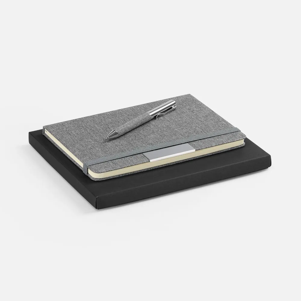 - блокнот на 160 страниц в линейку с металлической шильдой и резинкой
