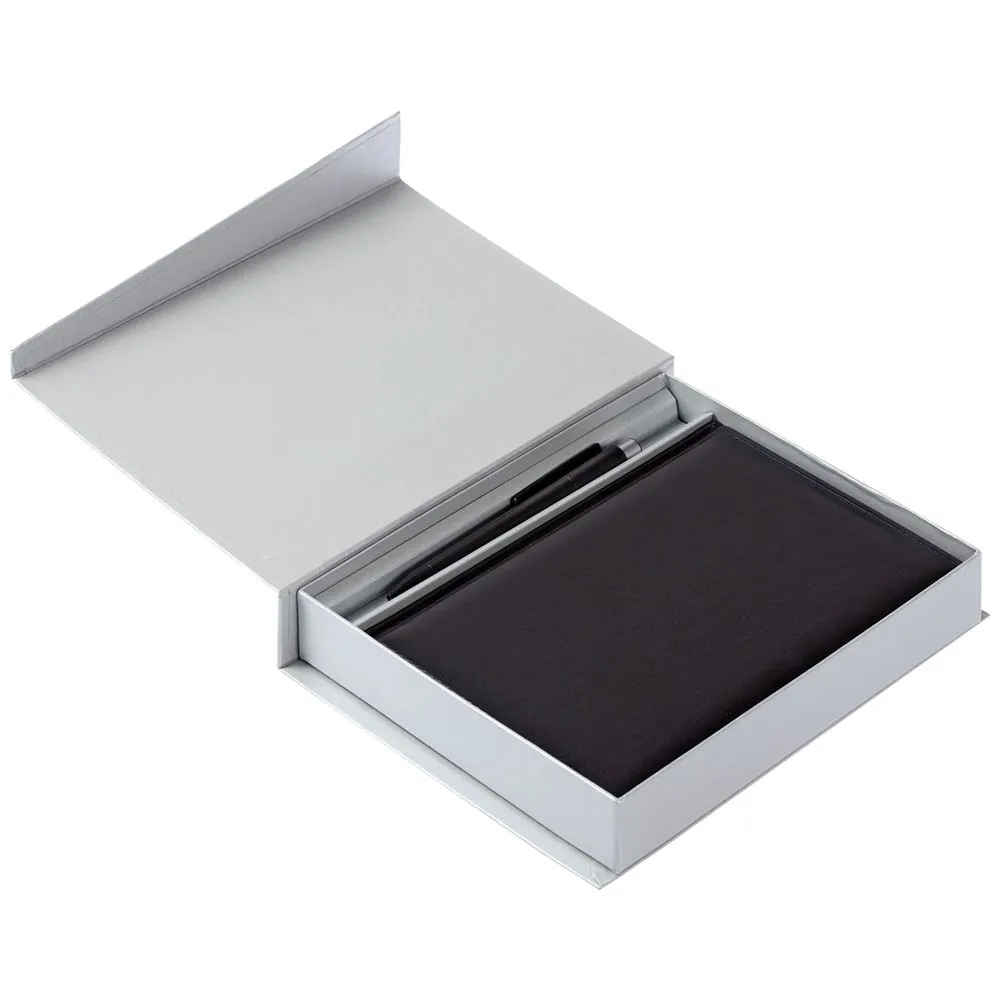 Коробка с клапаном на магните, выполнена из переплетного картона, кашированного бумагой Malmero.