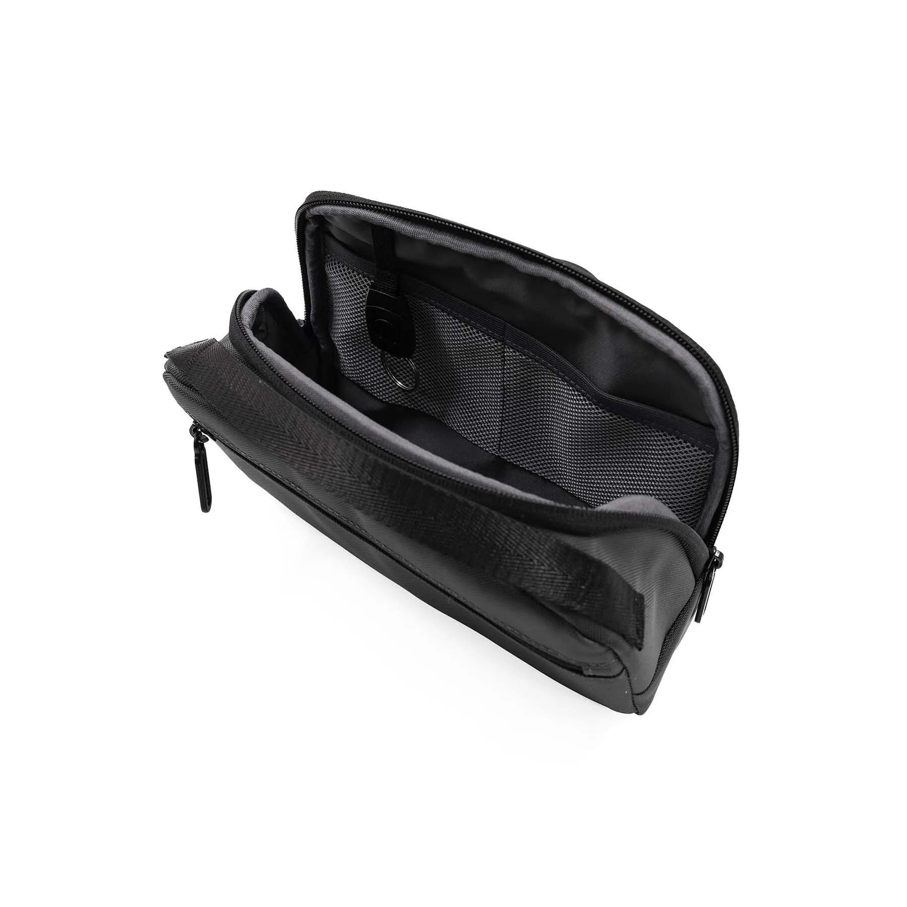 Экологичная сумка из баллистического полиэстера 800D с элементами из веганской кожи. Изготовлена из 1,7 переработанных ♻PET- бутылок (по 500 мл), сертифицирована по стандарту RCS (Recycled Claim Standard). Компактная и удобная, внутри 5 карманов и 4 эластичные петли для хранения телефона, кошелька и других мелочей, есть съемный держатель для ключей. Основное отделение на молнии и две боковые петли для крепления аксессуаров или карабина. Материал устойчив к влаге и загрязнениям. Объем 2,2 л.